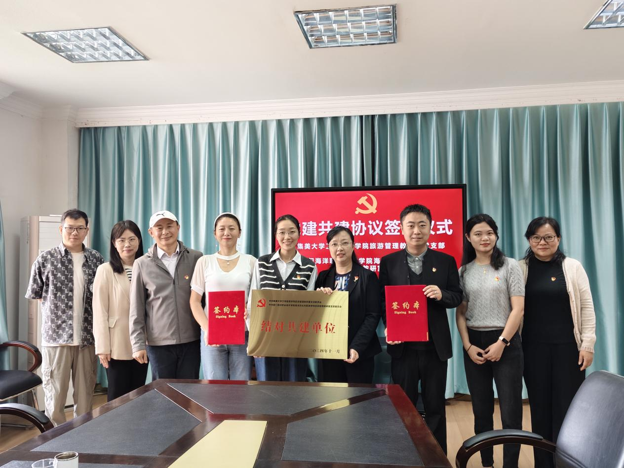 11月21日,海洋文化与旅游学院旅游管理教研室党支部支委会李辉老师等四位成员前往集美大学,同集美大学工商管理学院旅游管理教研室党支部共同举办党建共建协议签约仪式。此次活动旨在进一步加强双方在教学、科研及党建工作领域的交流与合作,共同推动旅游管理专业的发展。