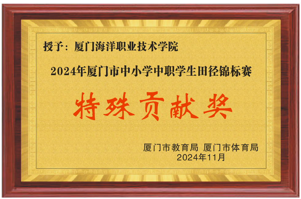 11月27日—30日,2024年厦门市中小学中职学生田径锦标赛在厦门市体育中心举行,我校休闲体育专业共108名师生参与赛事裁判及志愿服务工作。师生们凭借着扎实的专业素养、严谨的工作作风和顽强的吃苦精神有力保障了赛事,获得厦门市教育局、厦门市体育局授予的2024年厦门市中小学中职学生田径锦标赛特殊贡献奖。