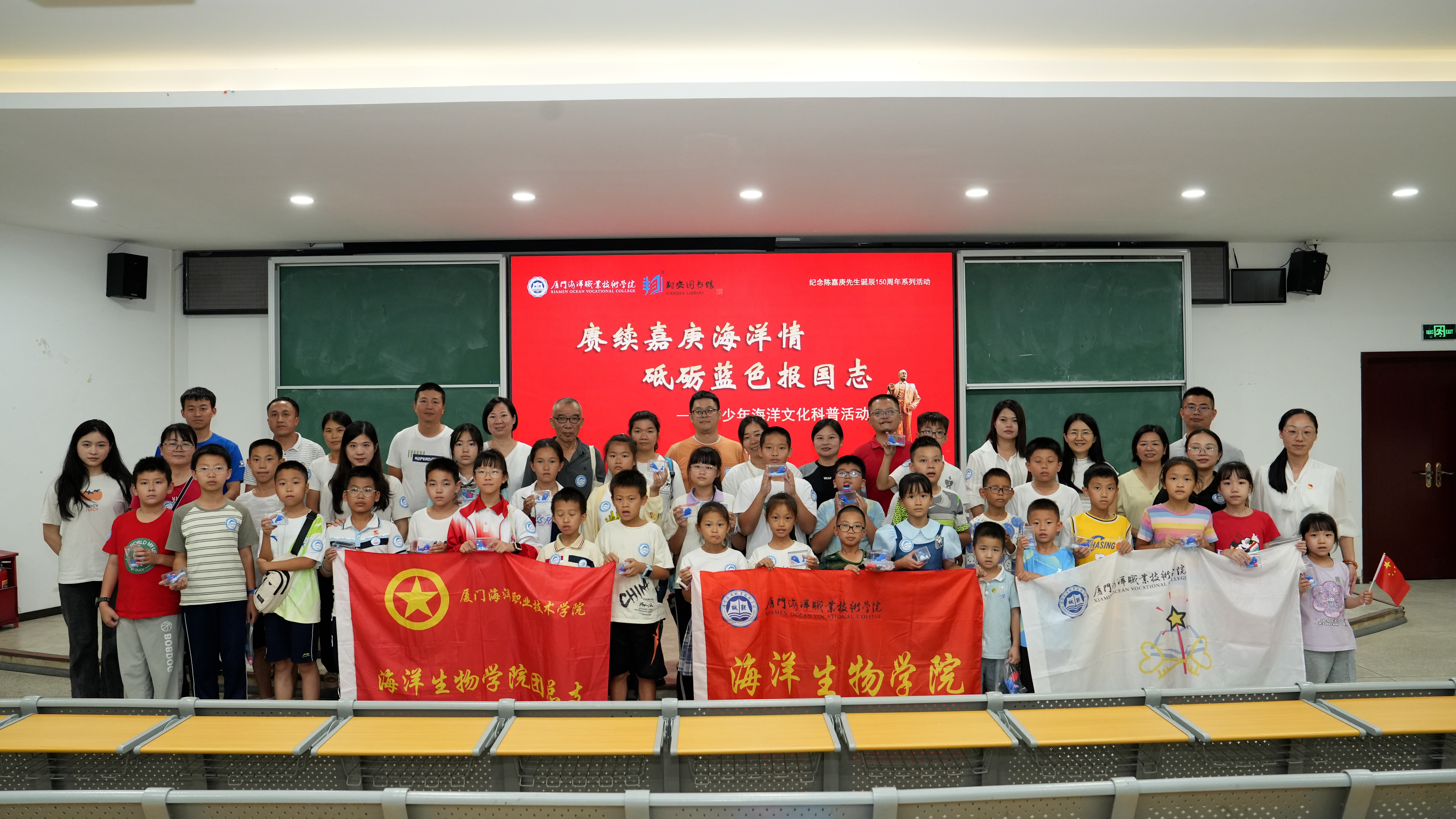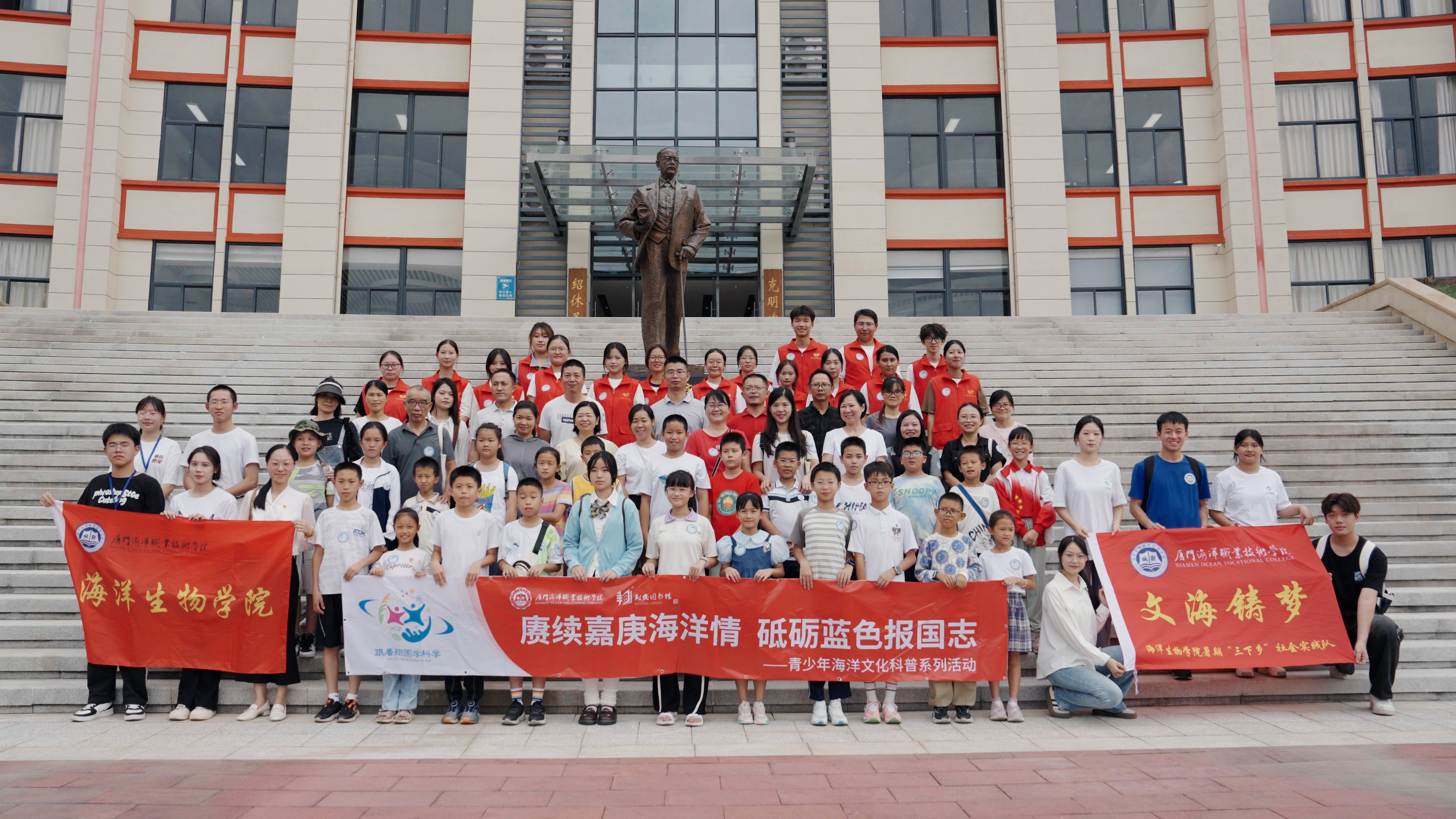 今年是新中国成立75周年,也是校主陈嘉庚先生诞辰150周年。为进一步传承和弘扬“嘉庚精神”,感受校主陈嘉庚先生创办百年水产职业教育的风采,深怀爱国之情,坚守报国之志,10月26日,在厦门国际海洋周即将来临之际,海洋生物学院与翔安区图书馆联合举办青少年海洋文化科普进校园活动。