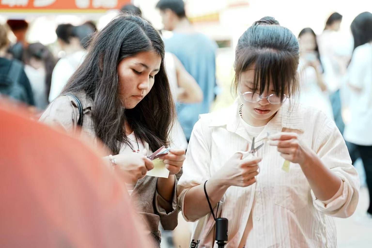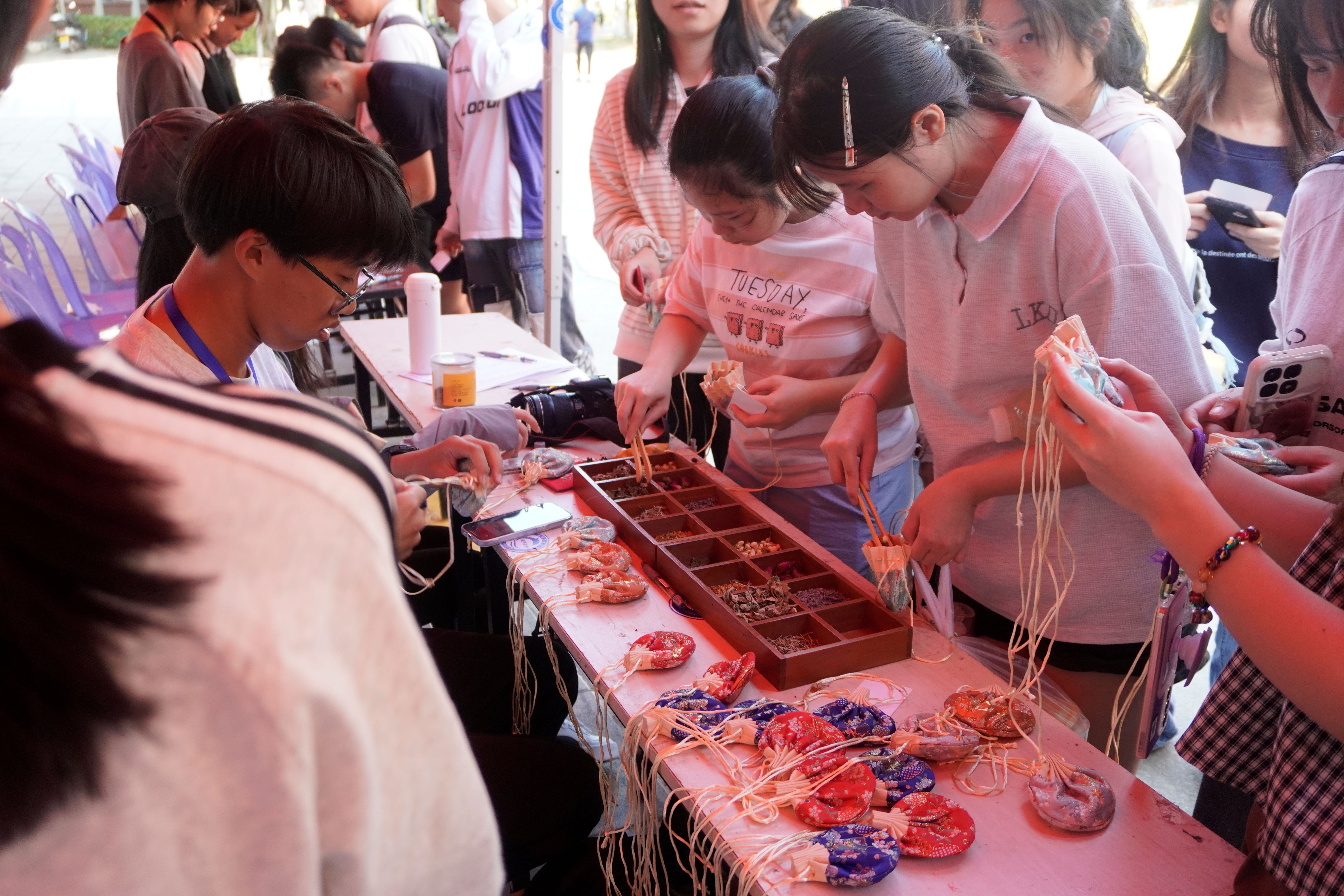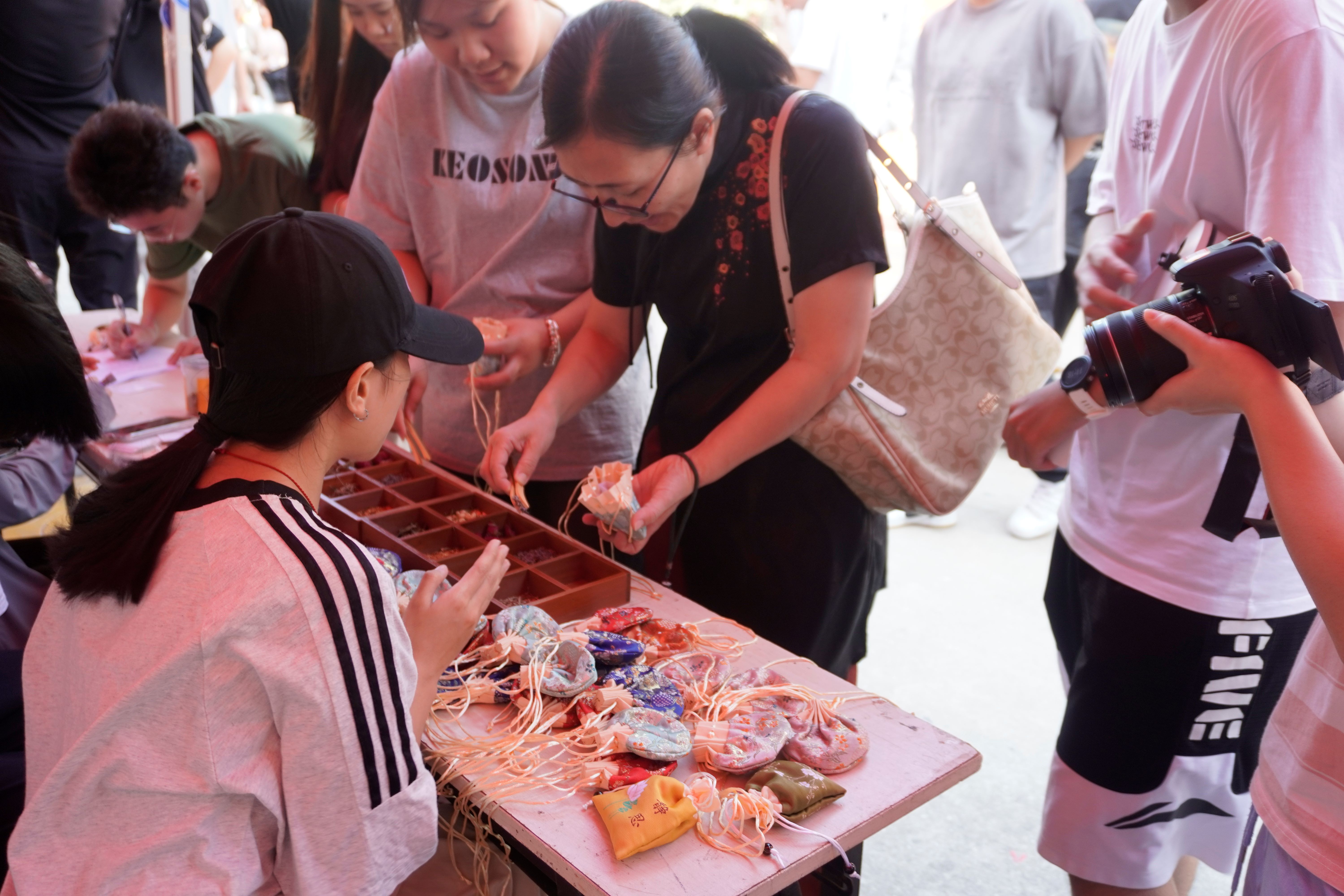 匠心独运,香远益清,香囊是传统的民间艺术品。同学们自行配置香囊干料,装入福袋,并在上面写上祝福或者理想亦或希望。同学们选择将自己亲手制作的香囊留下,或作为祝福赠送给其他同学。一缕缕香气成为了心连心的“桥梁”,让校园更加“芳香浓郁”。