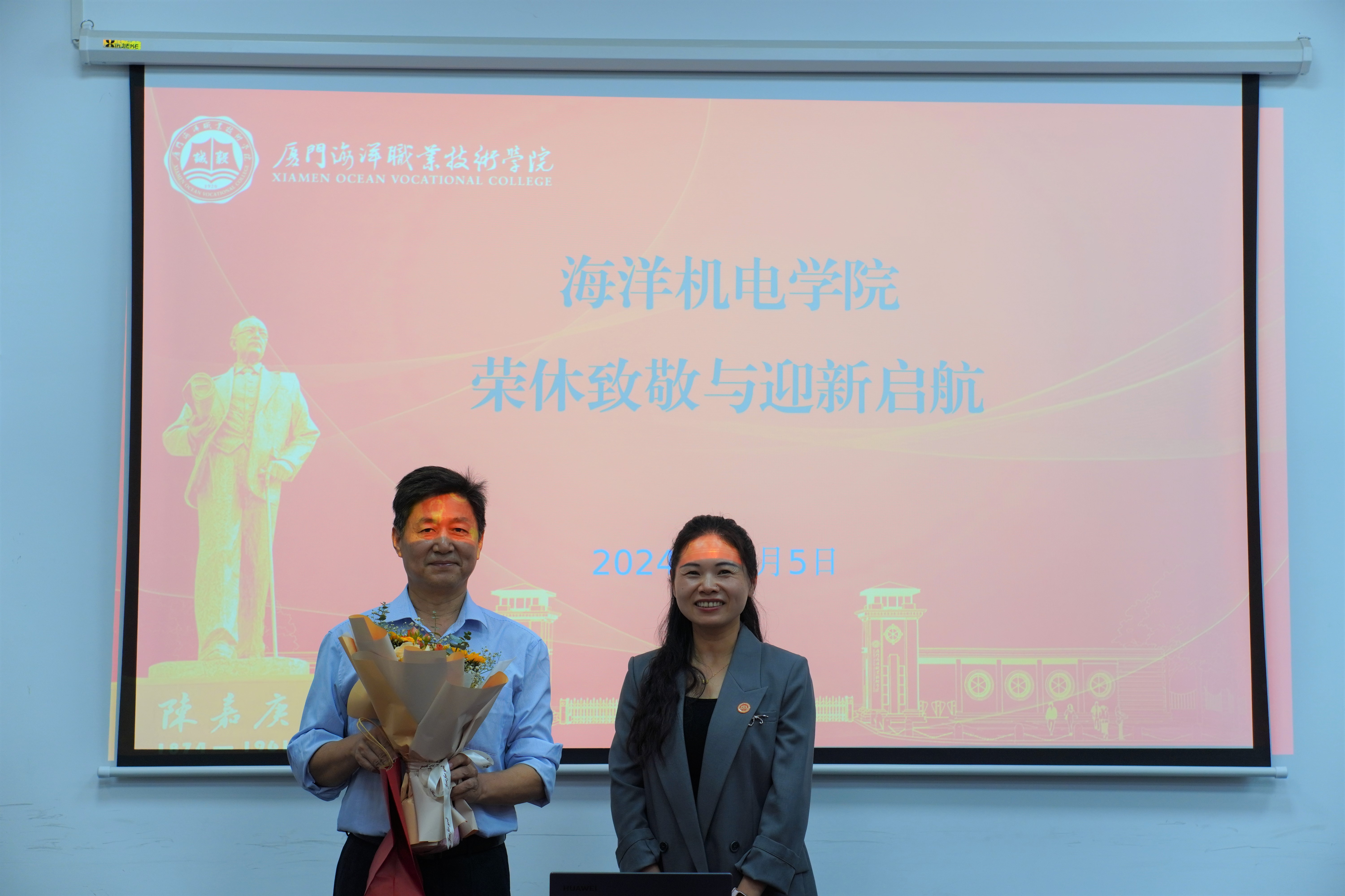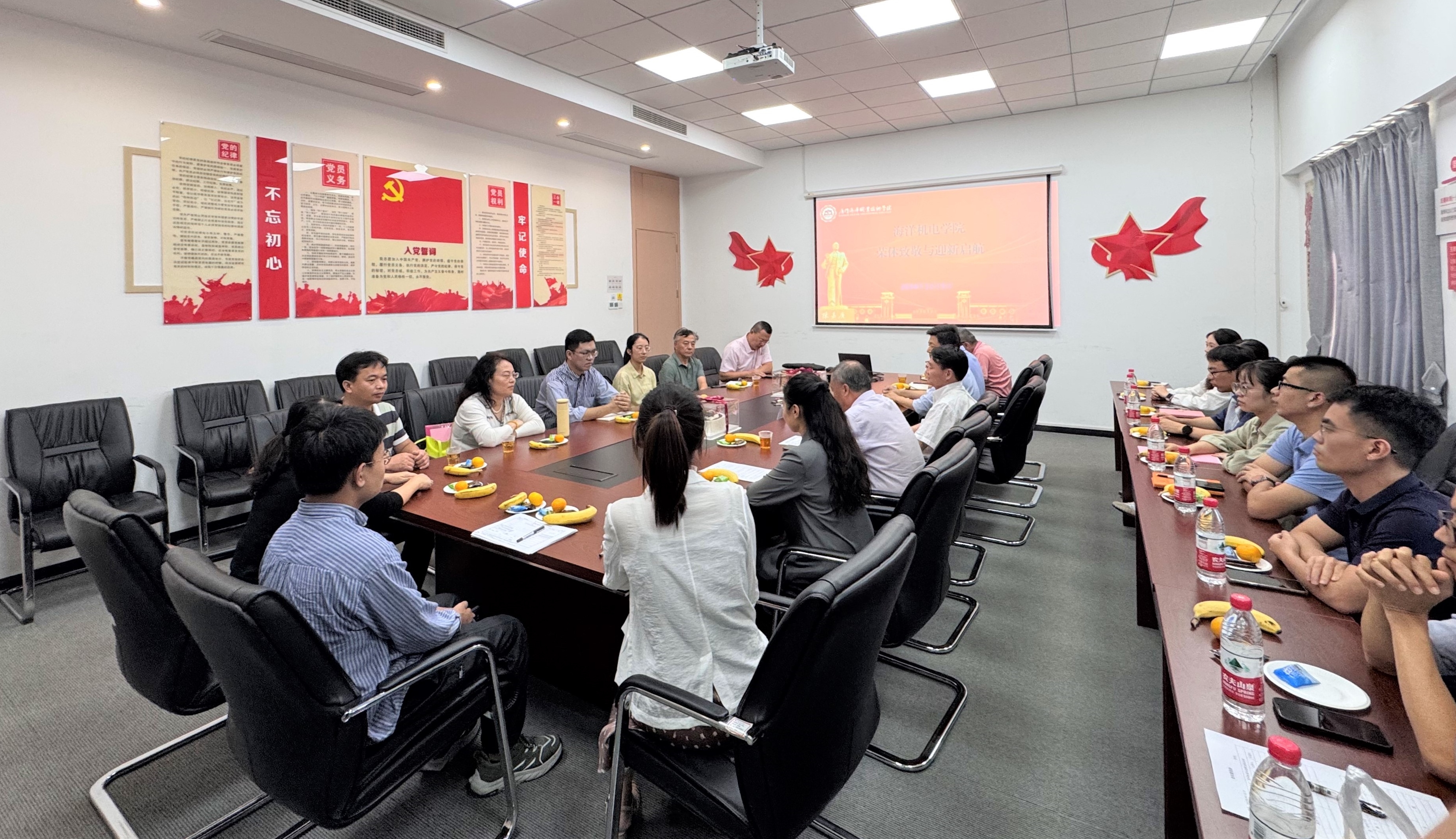 时光荏苒,岁月如梭。为致敬海洋机电学院党总支书记王斌躬耕教坛数十载,即将光荣退休,同时激励新人传承前辈的敬业精神和高尚品格,11月5日,海洋机电学院以“薪火相传,新辉启航”为主题开展荣休致敬与迎新启航活动。党委委员、纪委书记蔡宏伟与海洋机电学院教职工代表齐聚一堂,共同见证这一温馨、难忘的时刻,会议由院长王忠杰主持。