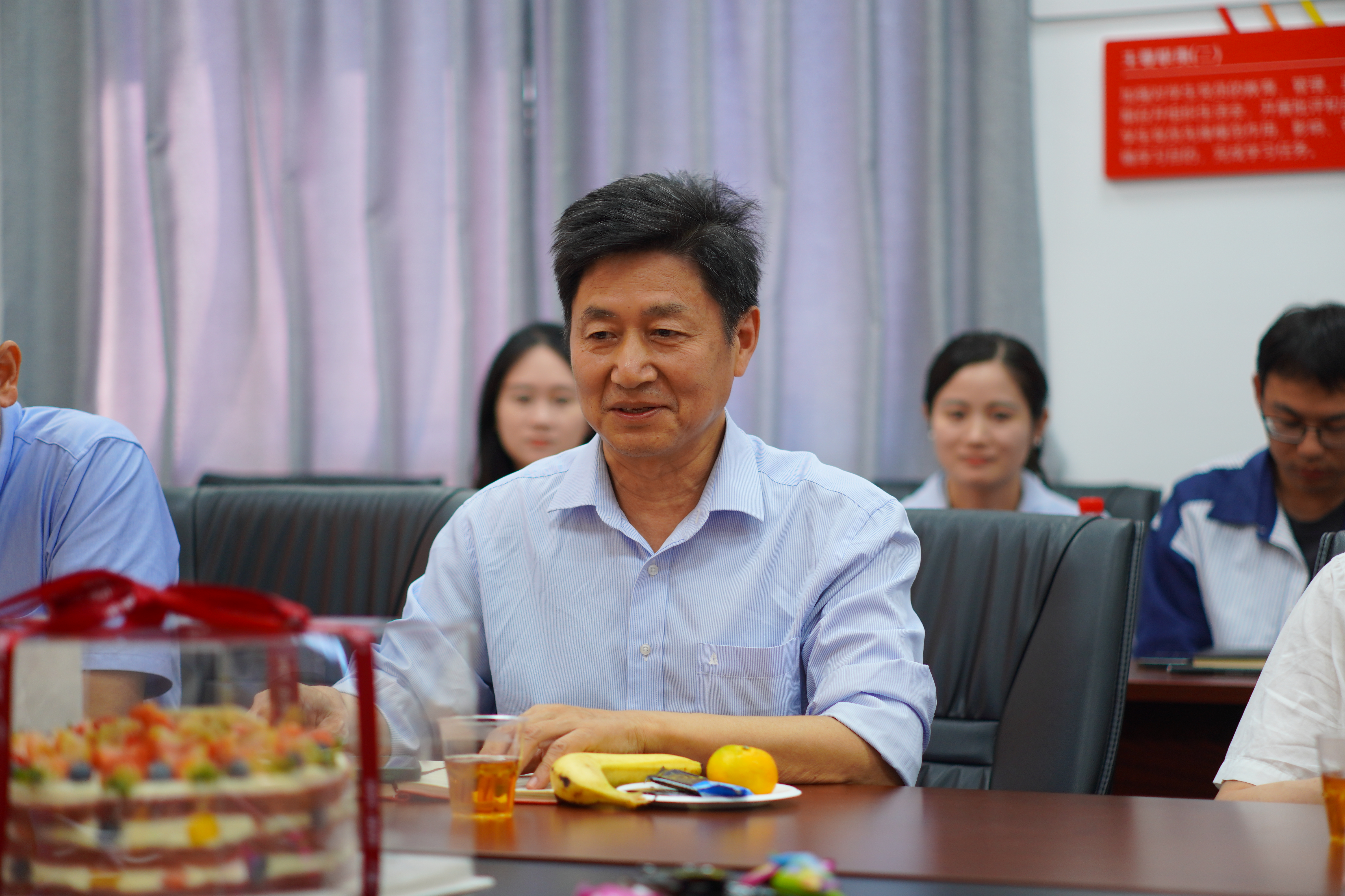 首先由王忠杰致辞,他代表学院感谢王斌书记数十年如一日对教育事业的卓越贡献。随后,新入职教职工逐一进行自我介绍,表达对未来工作的憧憬和信心,决心接好前辈交予的接力棒,满腔热情投入工作。在座的老师们也纷纷发言,深情回顾了与王斌书记共事的宝贵时光,对其谦逊宽厚的人格和勤勉尽责的工作作风表达了由衷的敬佩。希望他退休后开启更加精彩的生活,也欢迎他常“回家”看看,继续为学院的发展献计献策。