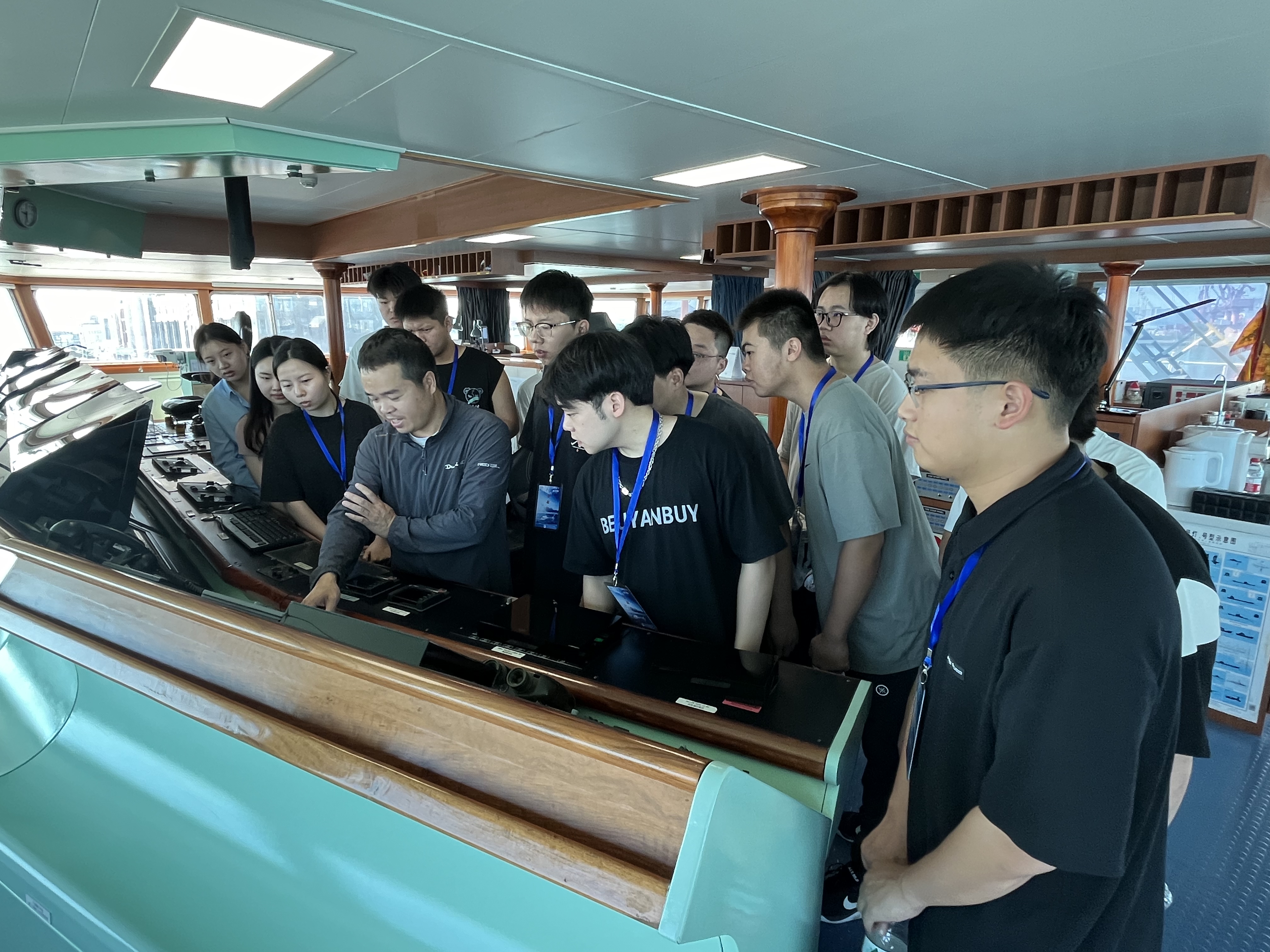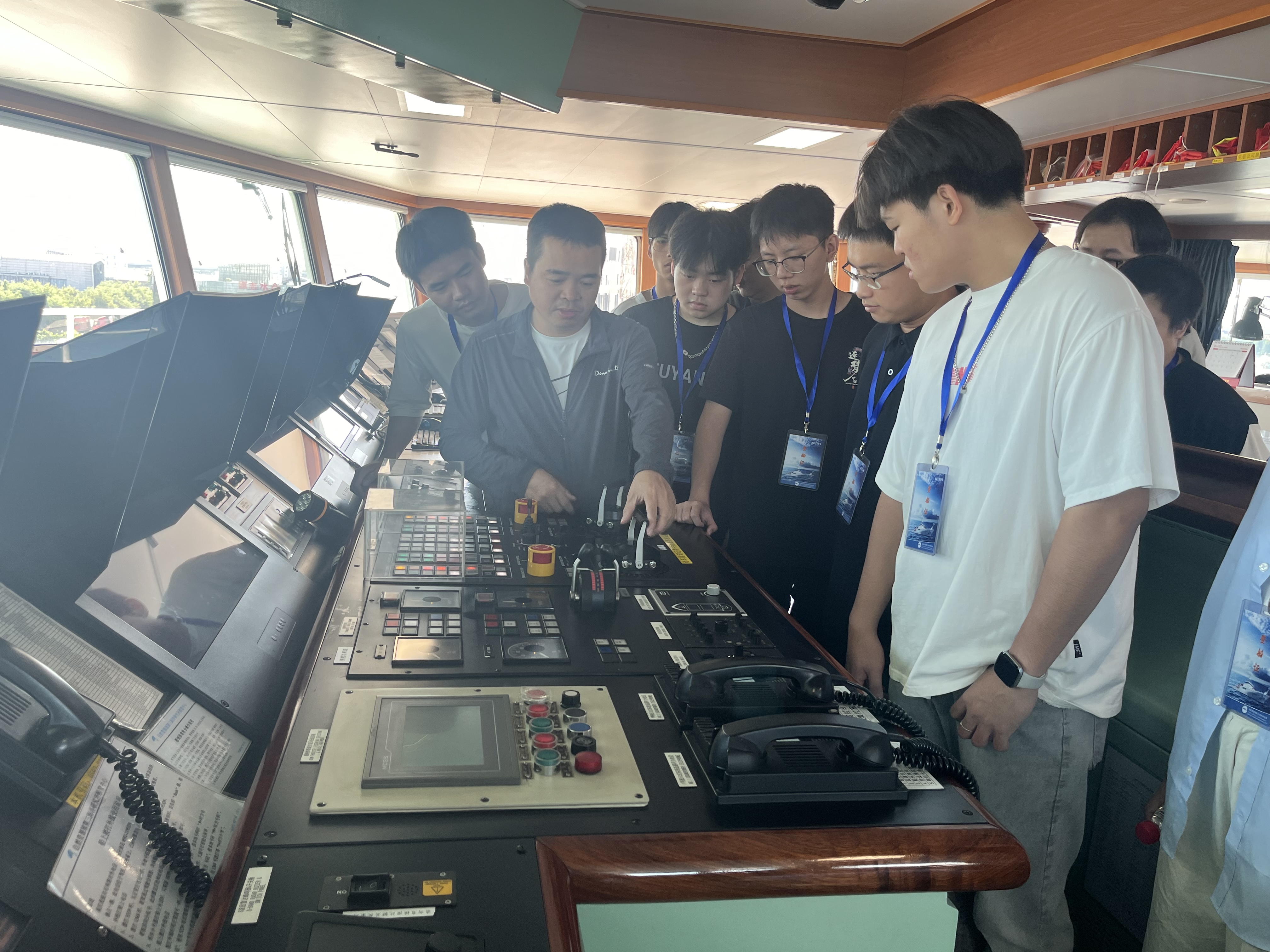 学生参观驾驶舱,了解现代船舶操控技术