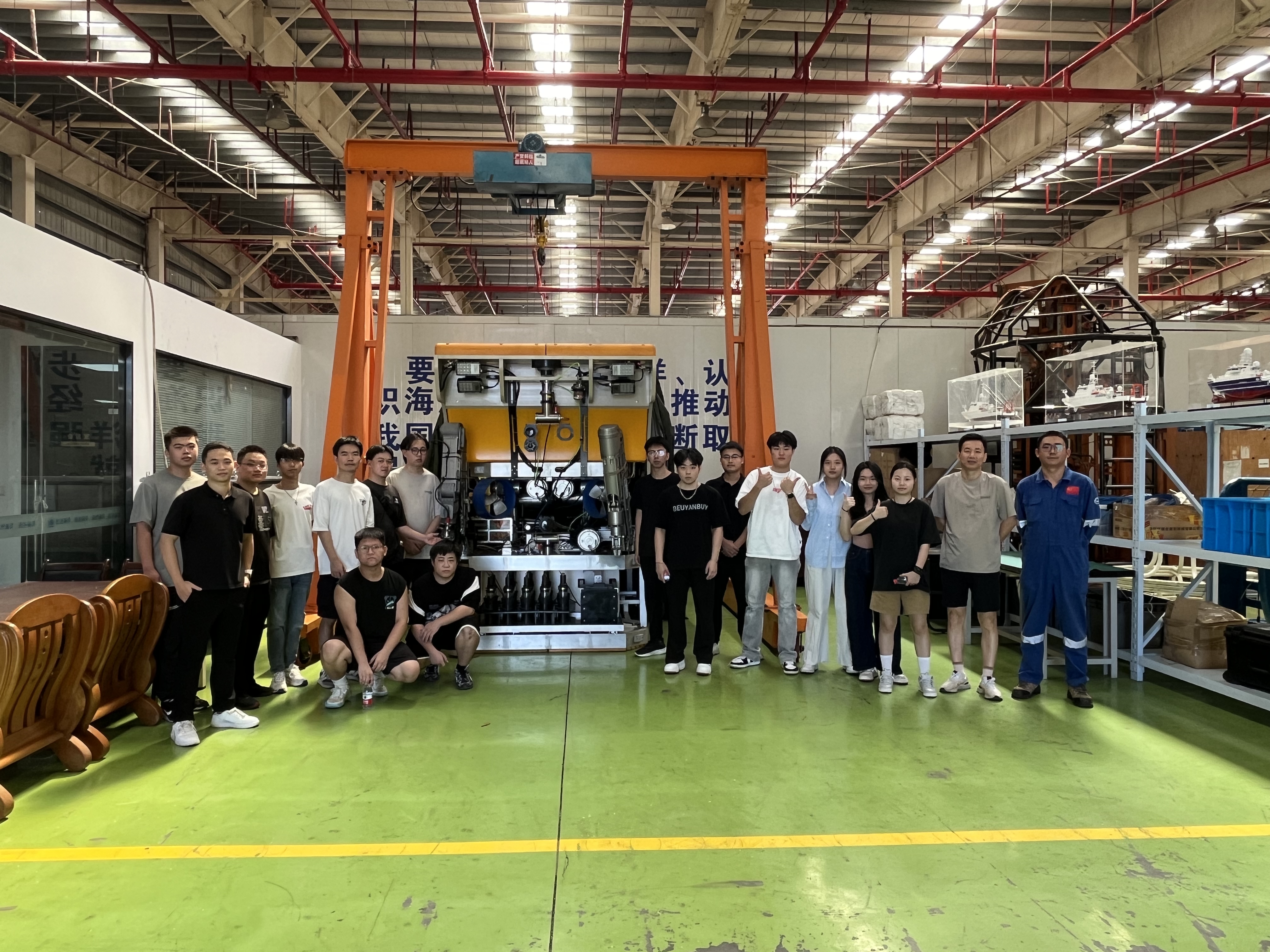 学生参观仓库并动手体验如何操作深水机械手