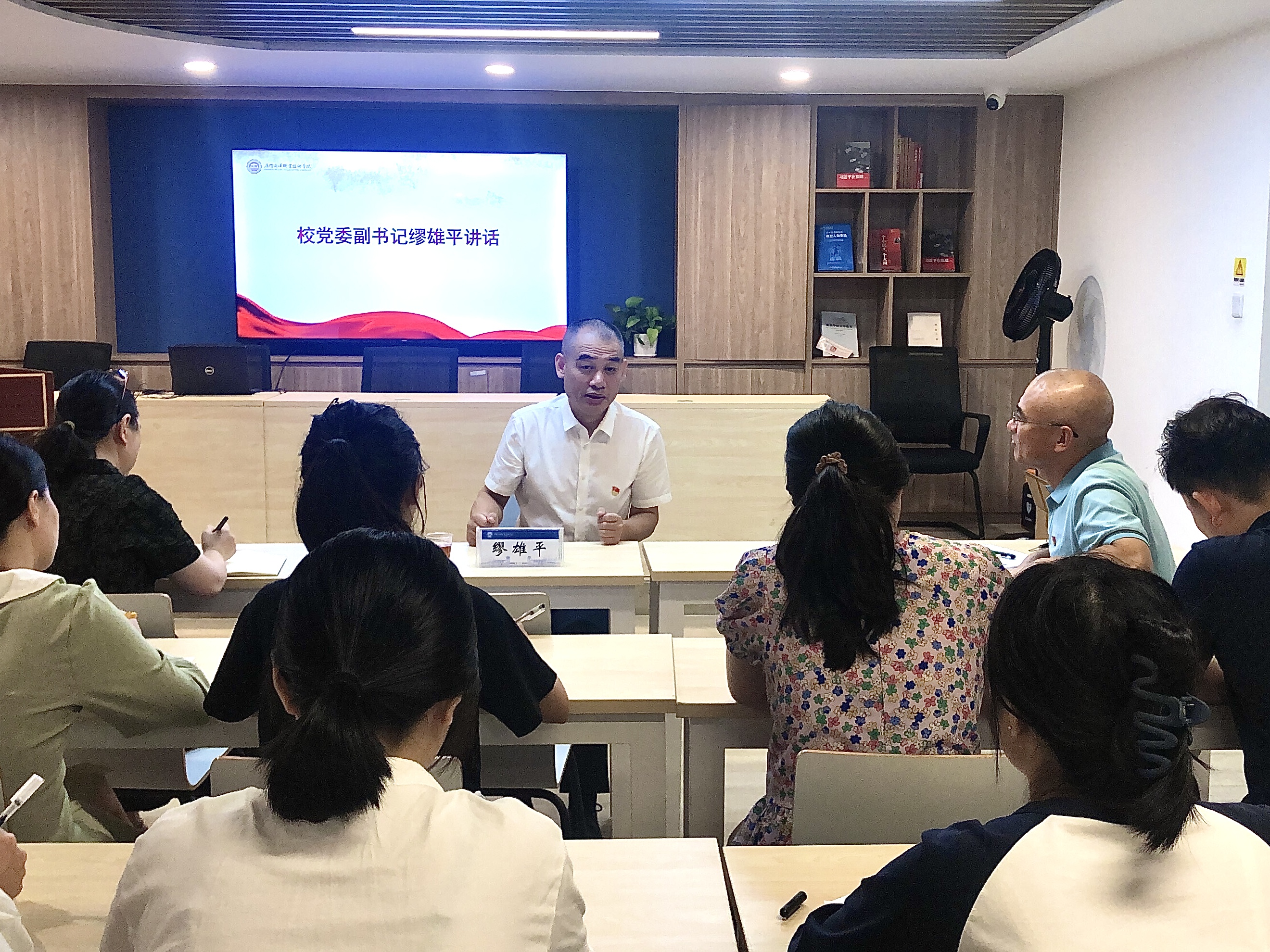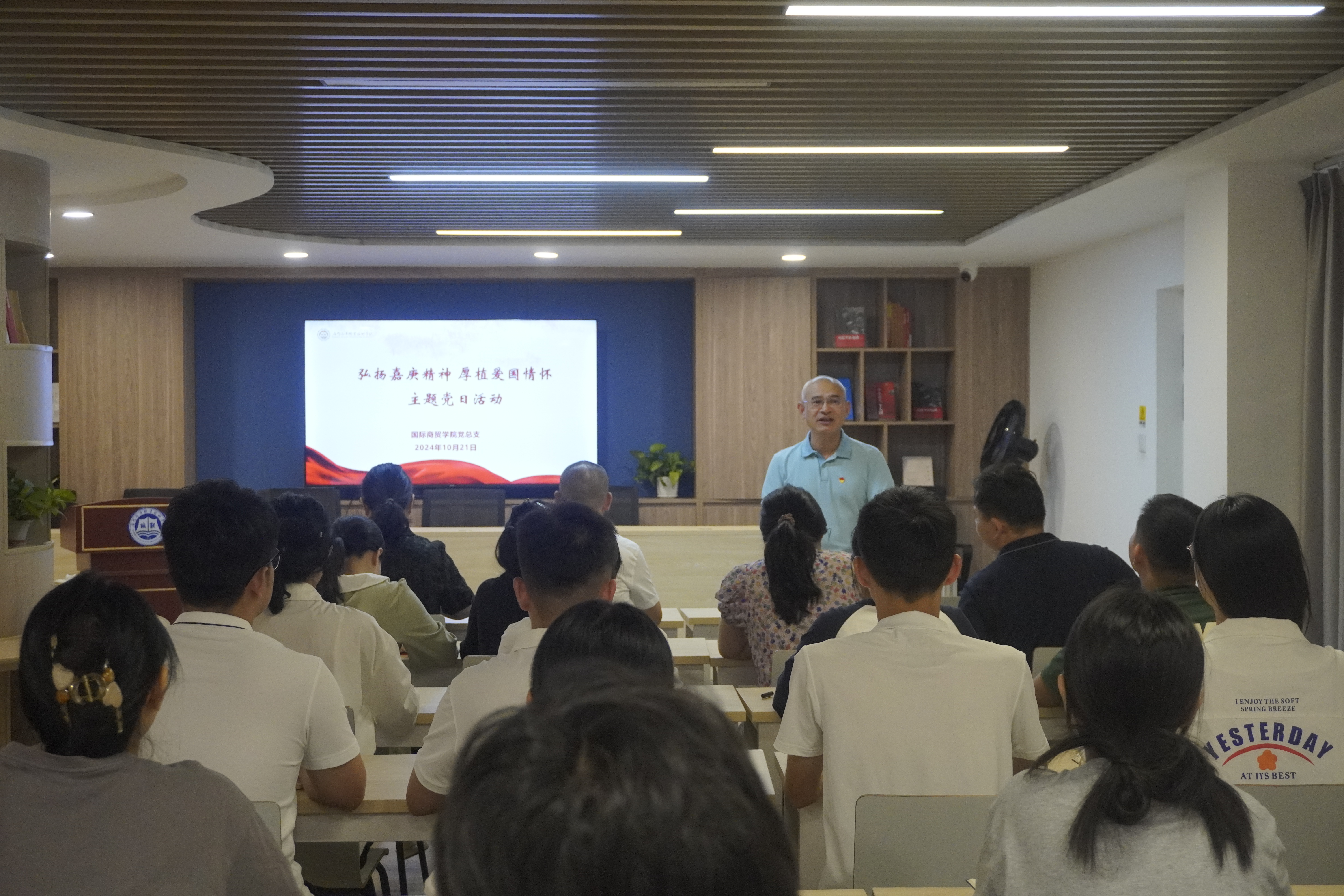 10月21日,国际商贸学院党总支举办“弘扬嘉庚精神,厚植爱国情怀”主题党日活动,校党委副书记、工会主席缪雄平应邀参加,并就“诚毅”校训内涵作深入解读。