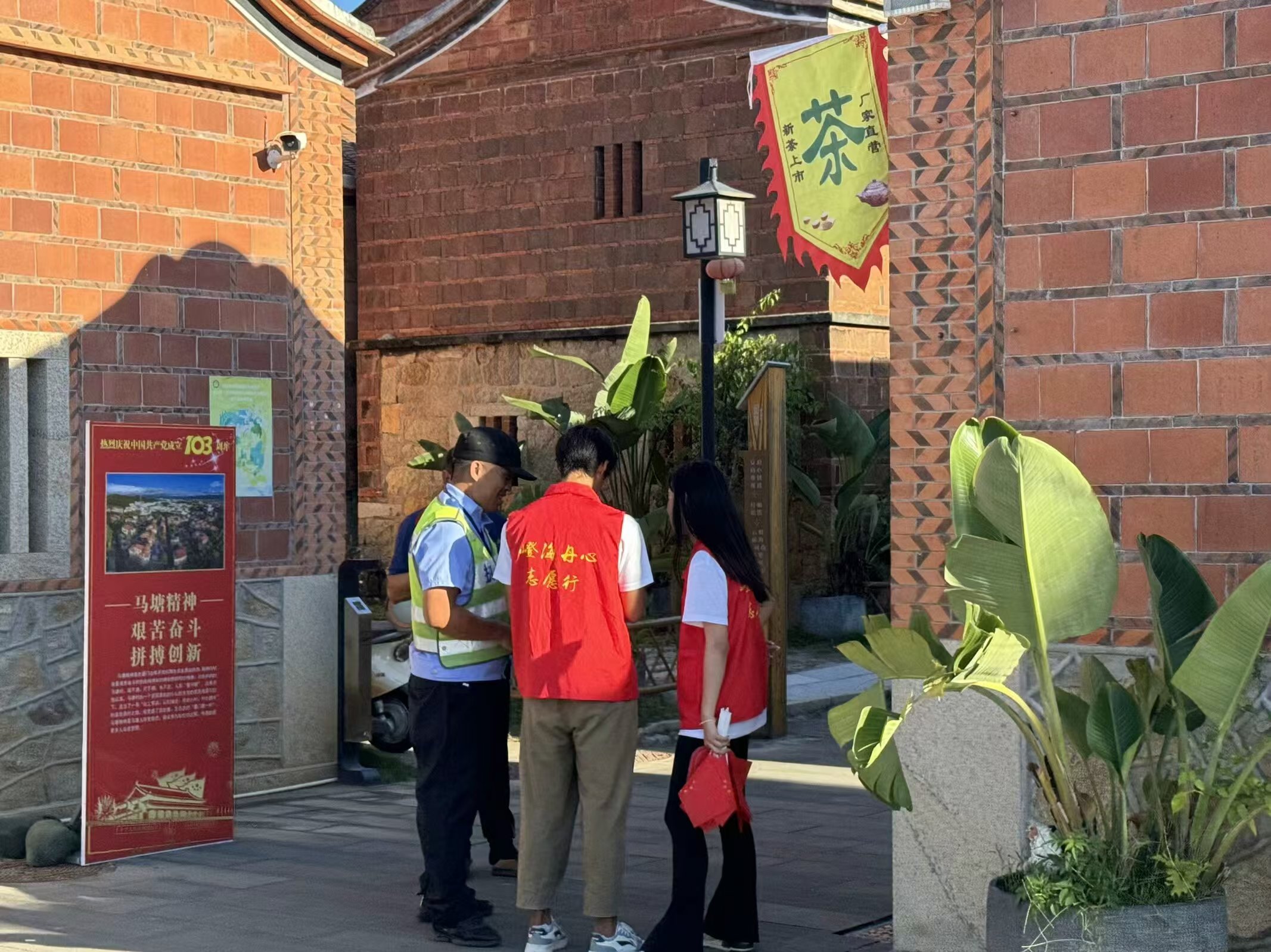 团队成员们在老师及大嶝岛相关负责人的带领下,一同走进了大嶝岛田墘社区开展志愿服务活动。志愿者们身着红马甲,开展了一系列志愿服务活动。
