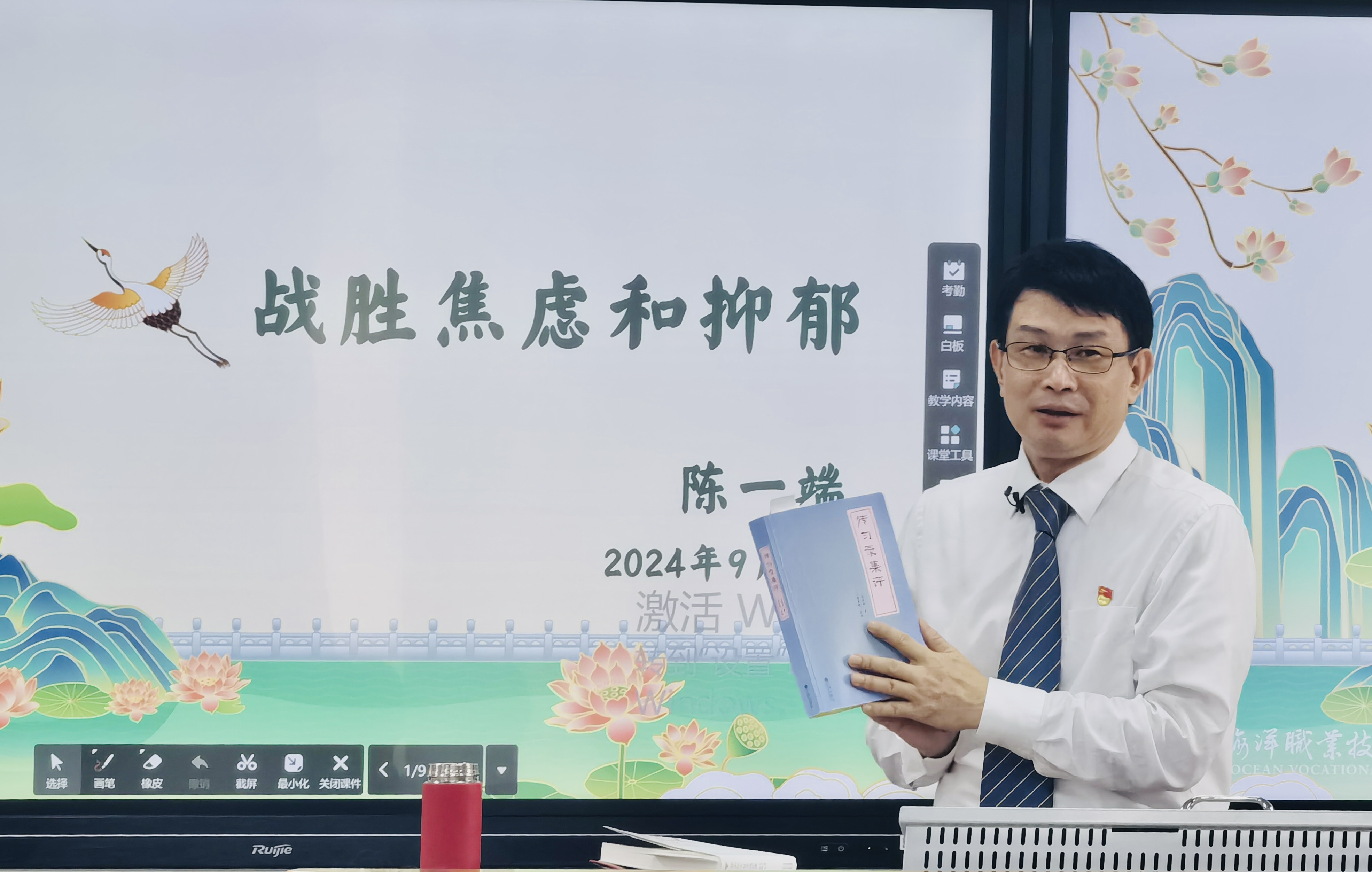 近日,党委书记陈一端以《战胜焦虑和抑郁》为主题为全校师生带来了一场深刻而实用的心理健康指导。他深刻剖析了焦虑与抑郁的根源,阐述了情绪与人体气机运行方向的关联,强调表扬与批评对心理状态的影响,提出以“无我”之境应对悲观情绪,鼓励大家在面对困境时保持内心的平静与坚定。他分享了中华传统经典中的六种修心方法及多种放松身心技巧,强调要用远大的理想来战胜眼前的挫折。他推荐同学们要从名人名著中汲取力量,注重国医国药在调节情绪方面的独特作用。他呼吁建立社会支持体系,拥有知心朋友,拥抱美好生活。
