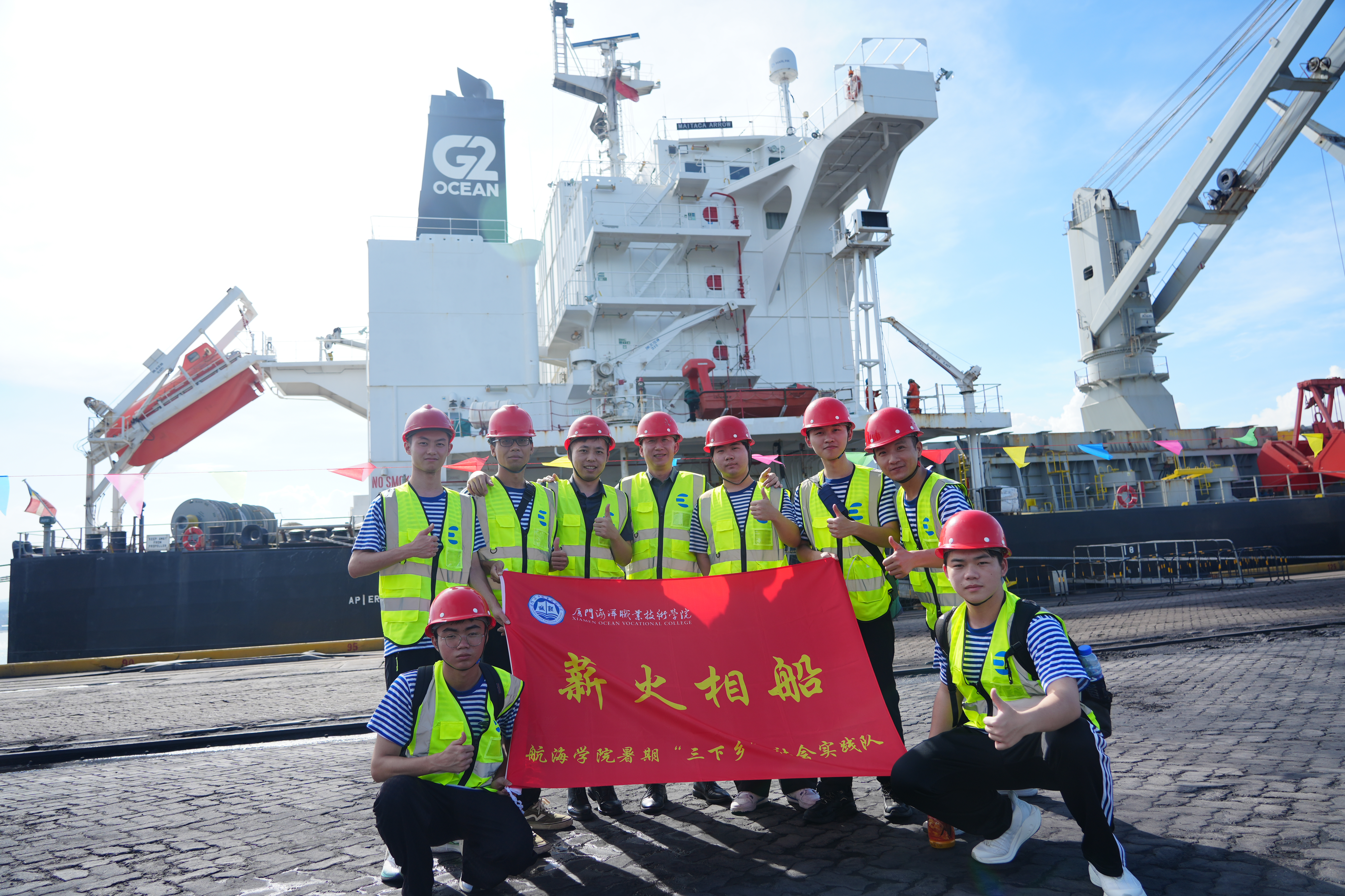 7月30日至7月31日,航海学院“薪火相‘船’”实践队以“筑梦远航 向海图强”为主题开展暑期“三下乡”社会实践活动。我校作为我国最早培养水产航海技术人才的摇篮之一,对航运业创新发展和高质量人才培养起到了极为重要的作用。为加快建设高素质船员队伍,促进航运业高质量发展,实践队于7月31日登上Maitaca Arrow号进行实地调研。