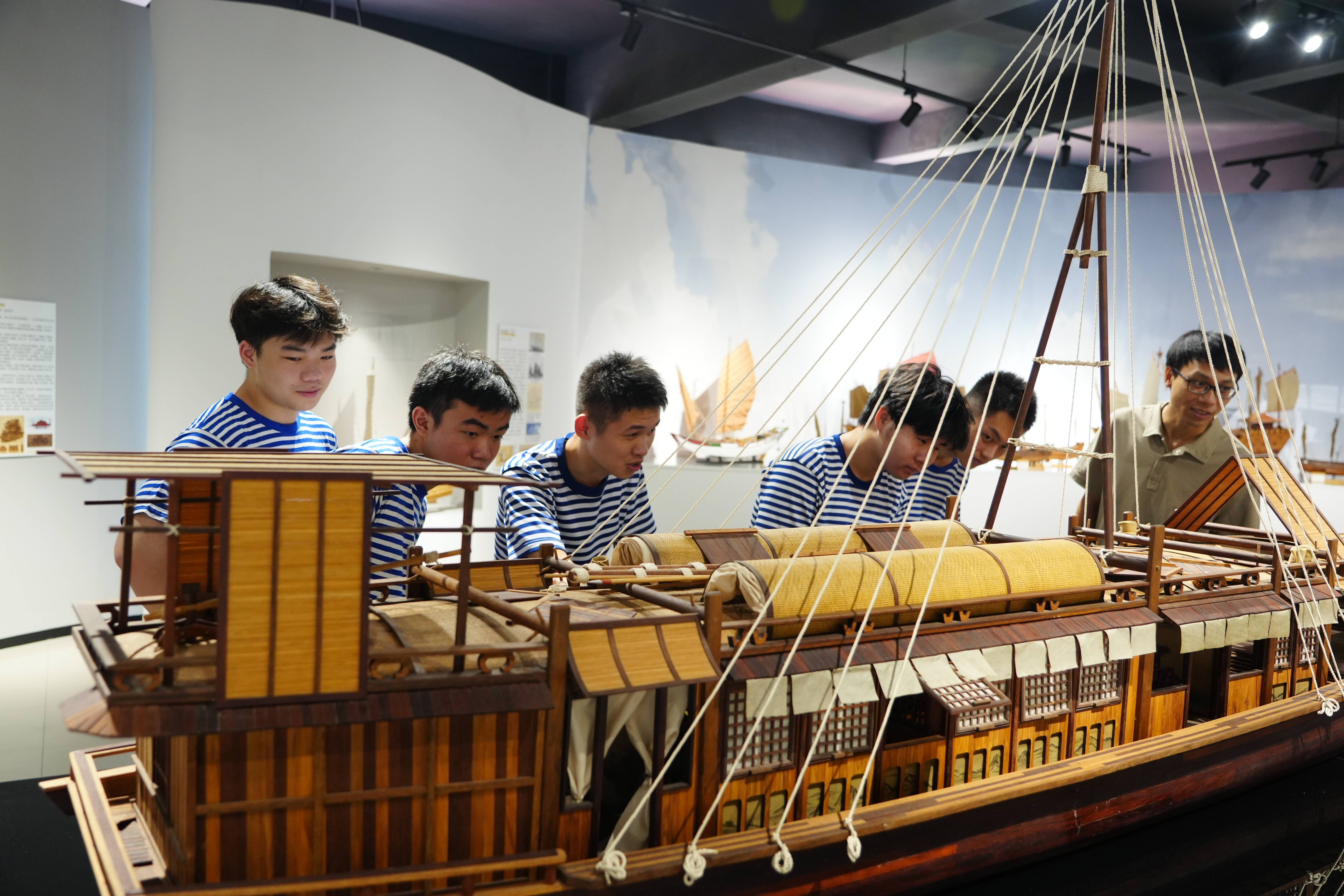 一艘船模、一个故事、一段历史。实践队成员通过参观这些船模,学习到了船模背后的航海文化与历史,进一步增强了投身航海事业的热情。