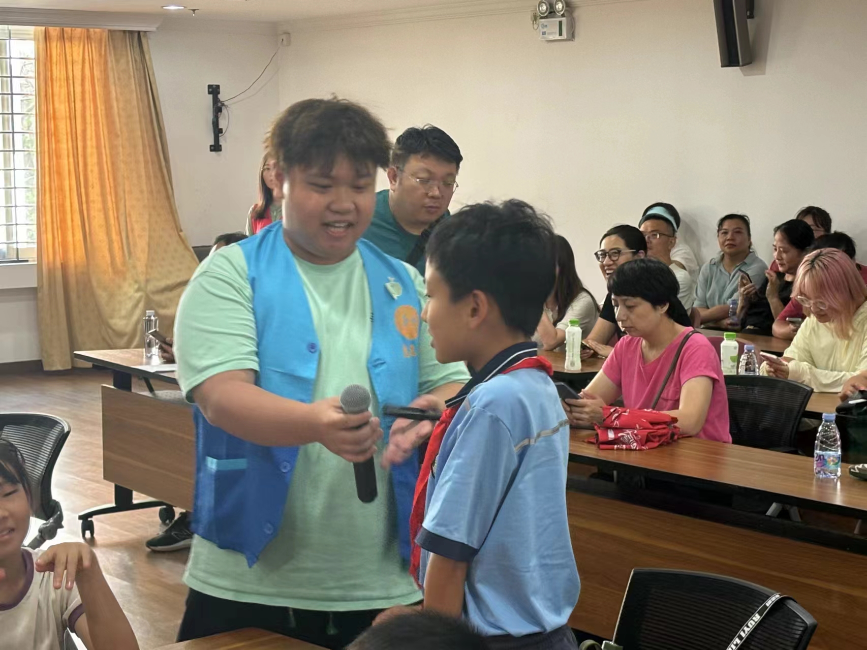 陈嘉庚先生被誉为“华侨旗帜,民族光辉”,一生倾资办学,旨在造就渔业航业中坚人才,以此“内利民生,外振国权”。在活动期间,实践队以严谨而富有创意的方式,通过PPT展示、视频动画与趣味问答的有机结合,向孩子们深入浅出地介绍了陈嘉庚先生的事迹及其卓越贡献,重点介绍了他对海洋教育事业的贡献。