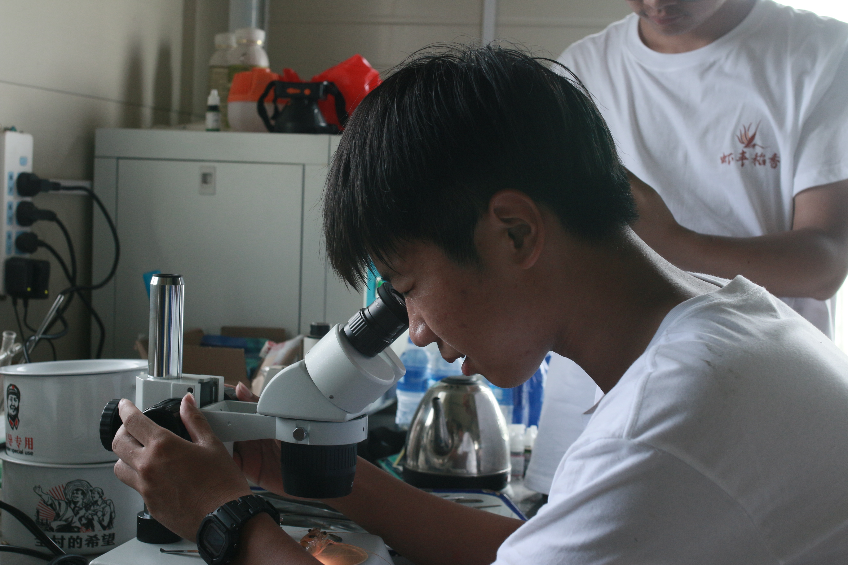 科学准确判断虾苗的活力,是培育优质虾苗的重要保障。针对虾苗养殖过程中的病害、水质调控等问题,实践队提出了针对性的建议,助力企业繁育“小虾苗”,孕育“大前景”。