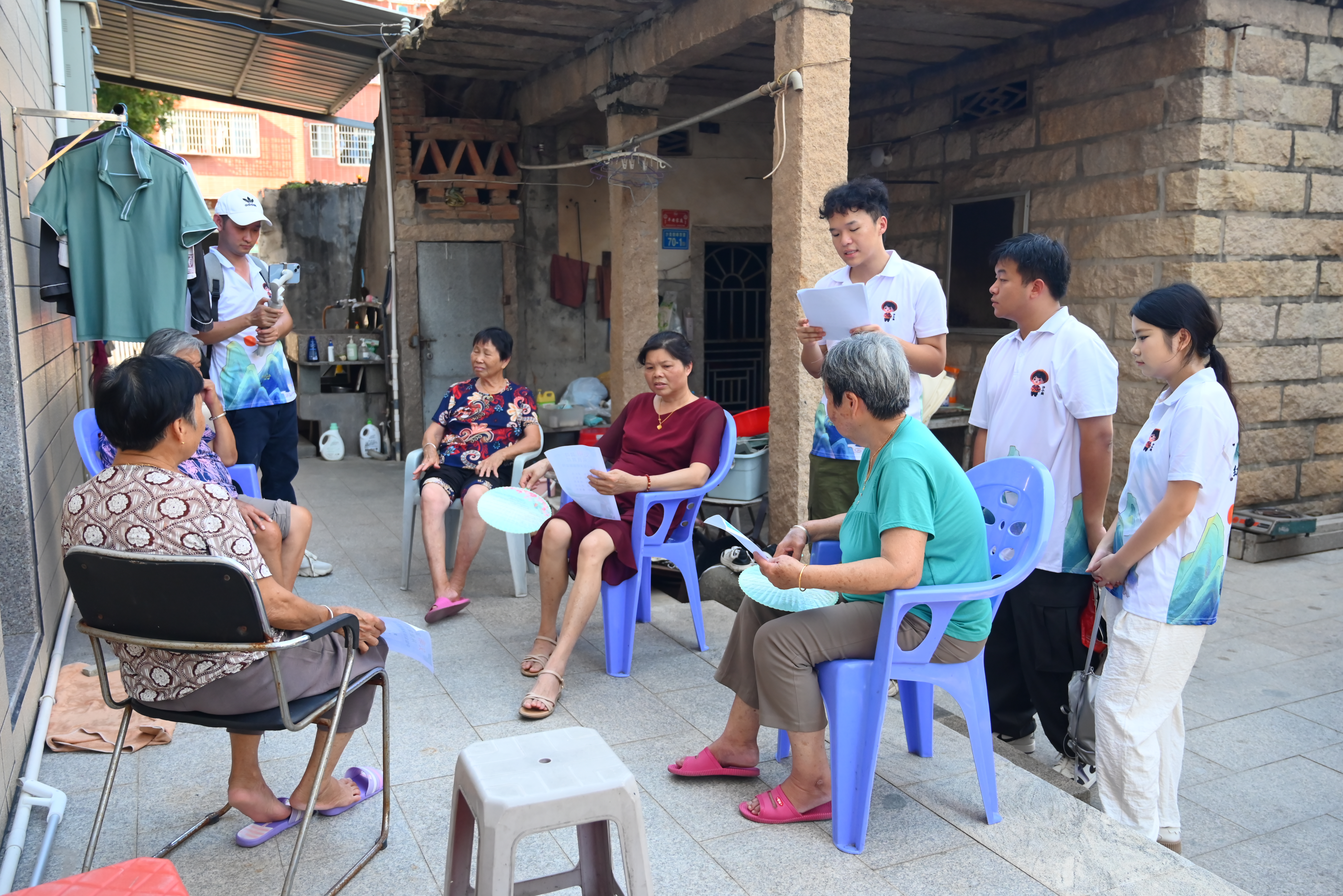 图为实践队队员在沙美社区居民住处引导居民完成文明旅游线上问卷 苏伊俊 摄
