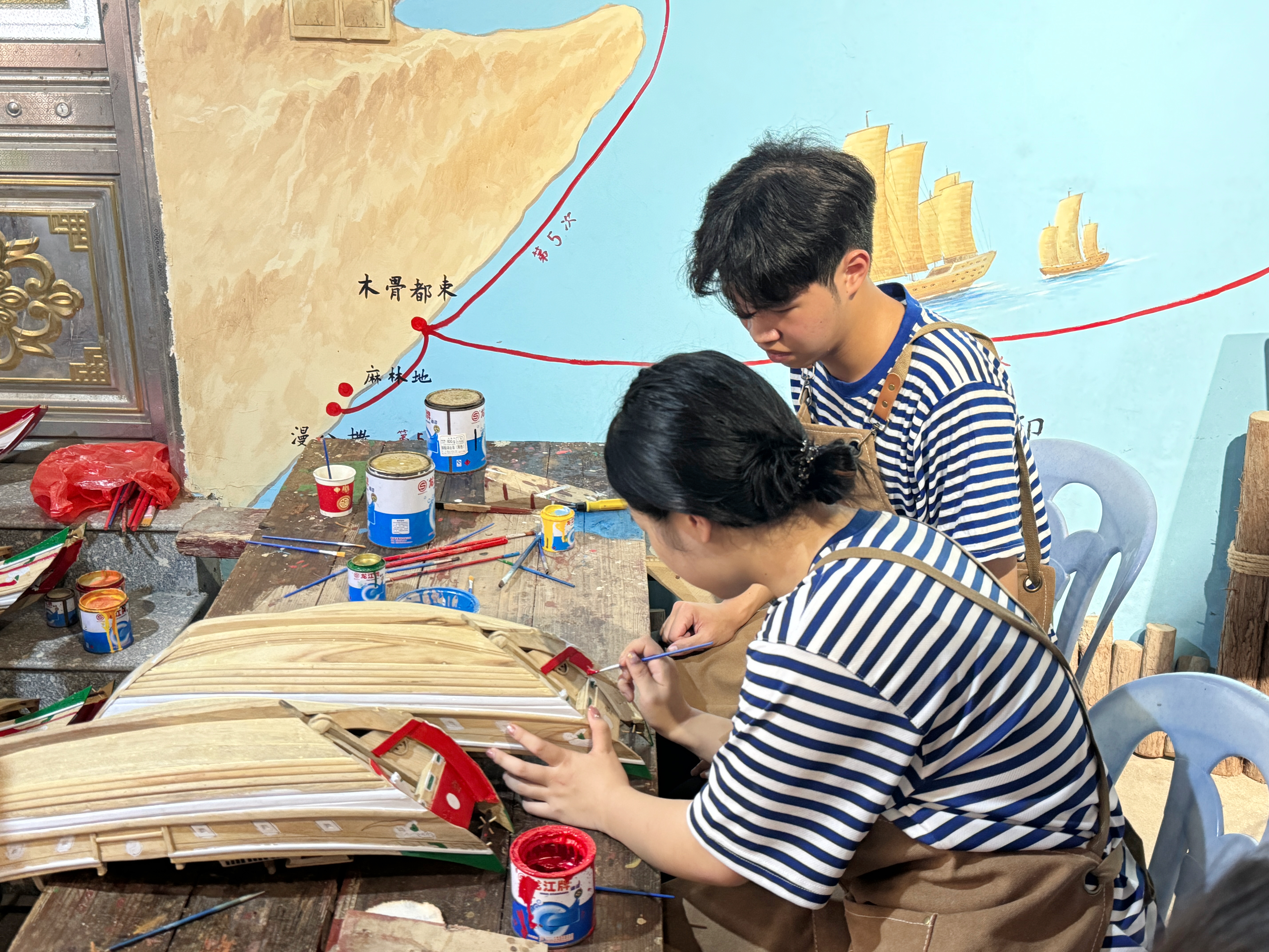 福船是“海上丝绸之路”的重要载体,其水密隔舱福船制造技艺是国家非物质文化遗产,但因传承人年龄断层、市场萎缩等问题面临濒危。实践队通过实践研习、结对共建、搭建平台等方式长效性保护和传承该项技艺。实践队成员分别前往大福船模有限公司、福船古船模制作有限公司、泉州市文化遗产保护促进会进行调研交流。队员们在工作坊动手实践打磨船体、上漆涂色、拼装船模等工序,更能领悟非遗匠心;通过访谈数名国家级、省级非遗传承人,民间行业协会会长,一线工匠师傅,更深入、直观地了解该项技艺的制作工艺及传承现状;通过共建多个社会实践基地,联合数10名跨区域传承人搭建关于古船文化交流平台,拟定期组织交流研讨,共同守护福船技艺与古船文化。