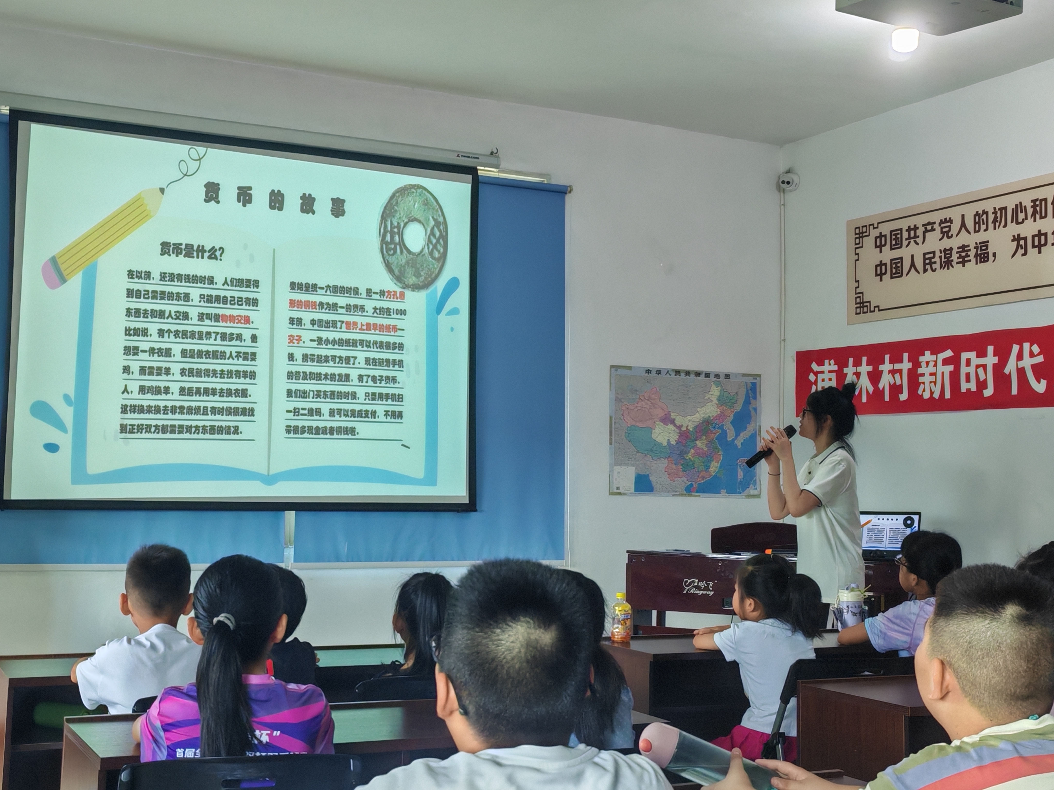 “请问大家知道日常中我们使用的货币是怎么来的吗?”“大家平时又是怎么管理自己的零花钱的呢?”实践队队员以互动问答的方式开启了金融知识小课堂。