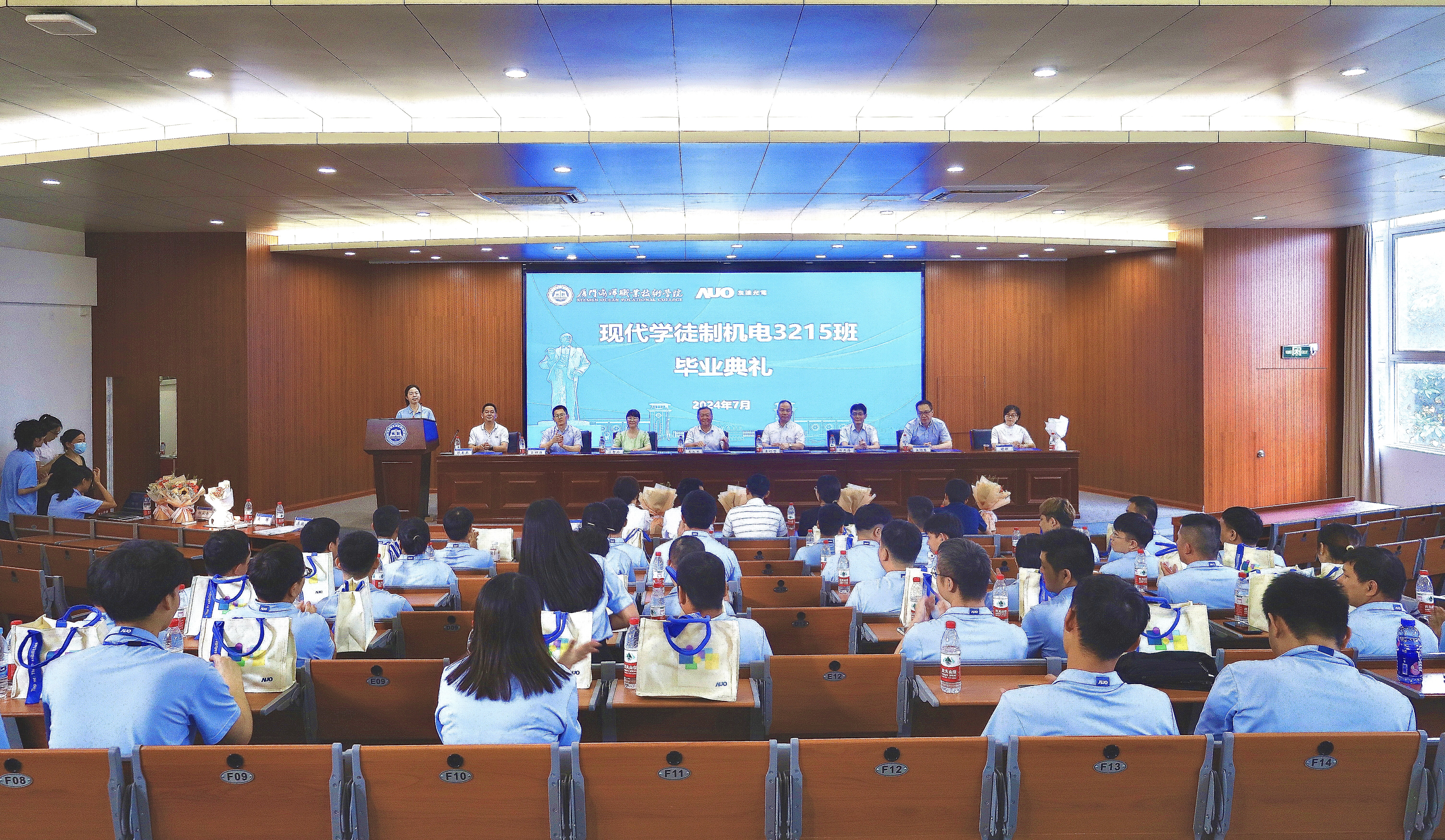 7月13日,现代学徒制机电3215班毕业典礼在翔安校区T2报告厅举行。典礼上,海洋机电学院院长王忠杰对同学们顺利毕业表示热烈祝贺,他希望同学们在新的起点上仍不忘继续学习新知识,弘扬嘉庚精神,秉承诚毅校训,在工作岗位不懈奋斗,为公司、社会作出贡献。他强调,通过校企共育人才模式,学生能够在真实的工作环境中学习,将理论知识与实际操作紧密结合,更符合经济社会发展要求,为学生的职业生涯打下坚实的基础。