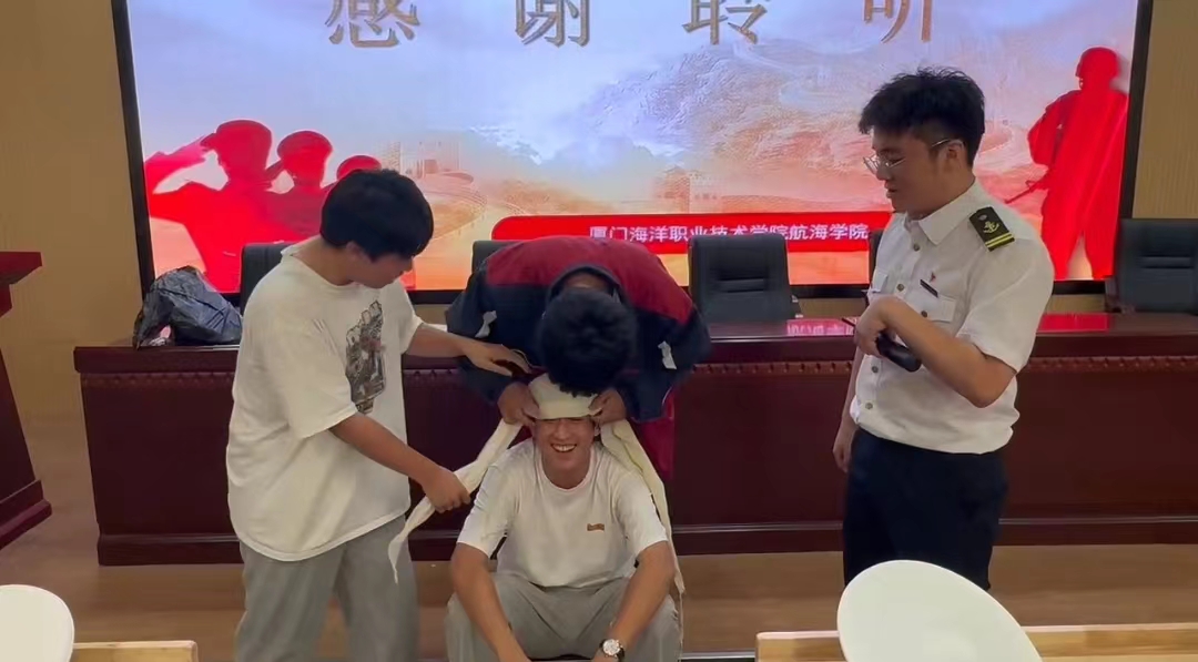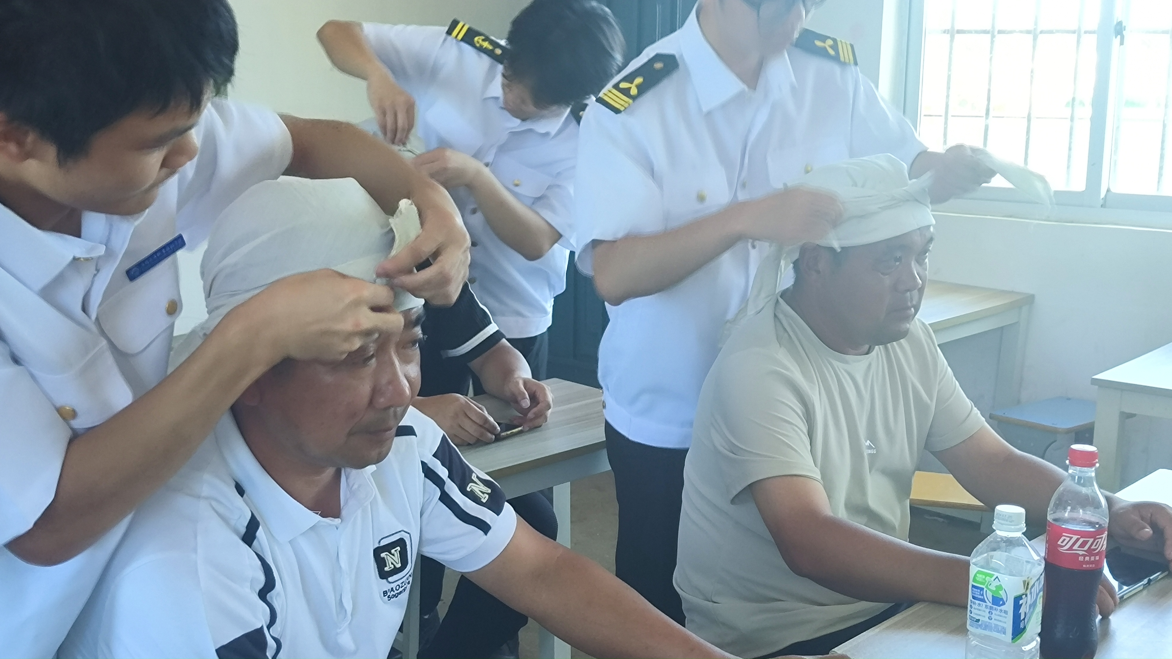 “岚帆启航”实践队抵达平潭县渔民培训学校,为渔民们讲授了救生三角巾的包扎技巧。通过生动地演示与指导,渔民们掌握了这一关键时刻能挽救生命的技能,提升了海上自救互救的能力。