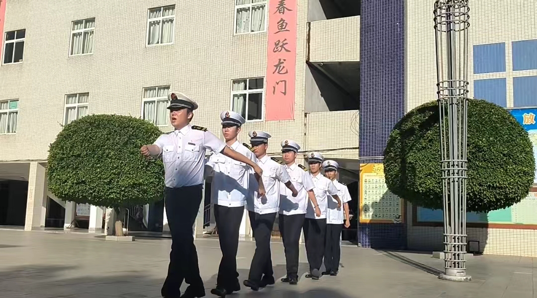 活动的最后一天,实践队在平潭翰英中学进行了半军管队列展示。队员们身着统一的服装,步伐整齐划一,展现了航海学院学子良好的精神风貌和严明的纪律作风,随后,实践队与平潭翰英中学举行共建仪式。