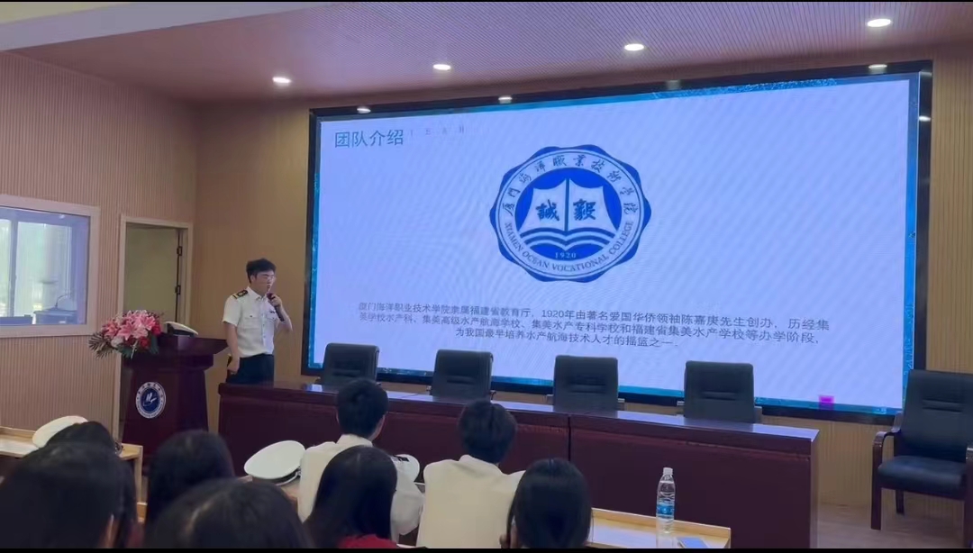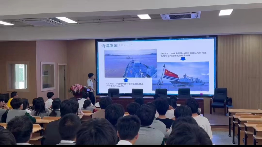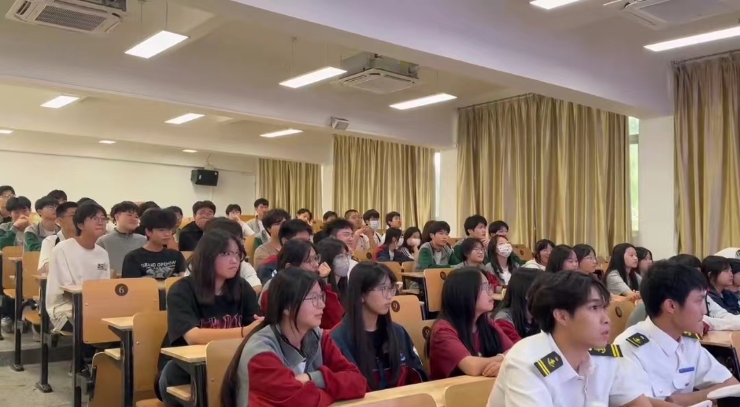 次日,实践队来到平潭翰英中学,宣传航海文化、海洋知识。上午,队员们以生动的航海宣传讲座开场,用丰富的图片、视频资料,将浩瀚的海洋世界、航海的相关技能知识及文化一一呈现,并向他们介绍了我校的基本情况,激发了同学们对海洋的向往。