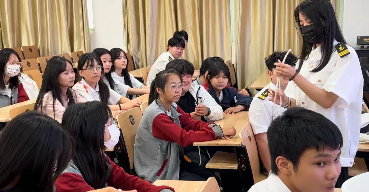 下午,实践队开展了落水急救知识教学、防溺水防海难教育指导等活动,现场演示了三角巾包扎、救生衣的正确穿戴,增强了学生们的自我保护意识和应急处理能力。此外,队员们还讲授了海丝结的几种简单实用的绳结方法。