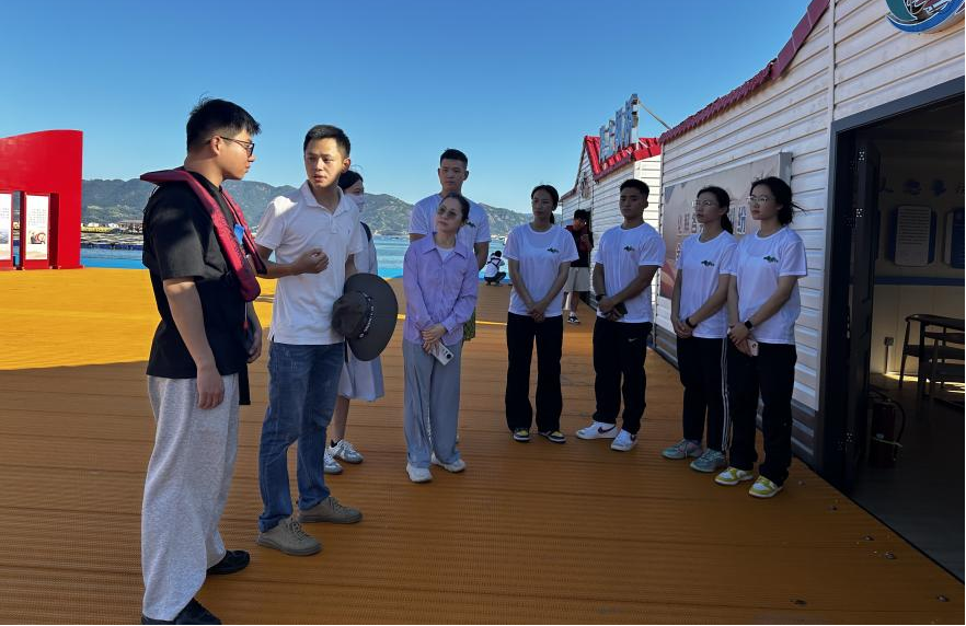 在渔业休闲平台,队员们考察了海上会议室、餐厅、民宿、水上乐园等旅游服务设施,了解七星鱼排规划及运营经验,同时针对七星鱼排海上交通换乘、参观导览、咨询等旅游服务方面提出优化改善的建议。