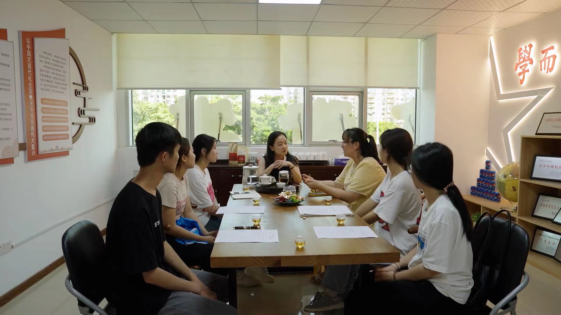 7月2日下午,实践队来到司法局筼筜司法所,与所长陈文霞共同探讨如何从法治角度入手进行筼筜湖保护工作。团队创造性地提出了“六个一”社会实践计划,并邀请筼筜司法所在共建社区开展水环境保护相关法律知识普及讲座。筼筜司法所陈文霞所长表示,一直以来,司法所的工作人员十分关注筼筜湖水质保护工作,也前往筼筜湖保护中心学习过,但是居民对于水质保护的相关法律还是不甚了解,希望队员们可以通过问卷调查等方式了解居民们在环境保护相关法律知识的盲区,协助普法工作的顺利开展。双方交流了实践活动计划安排,并就在育秀社区开展普法讲座的具体细节进行协商。
