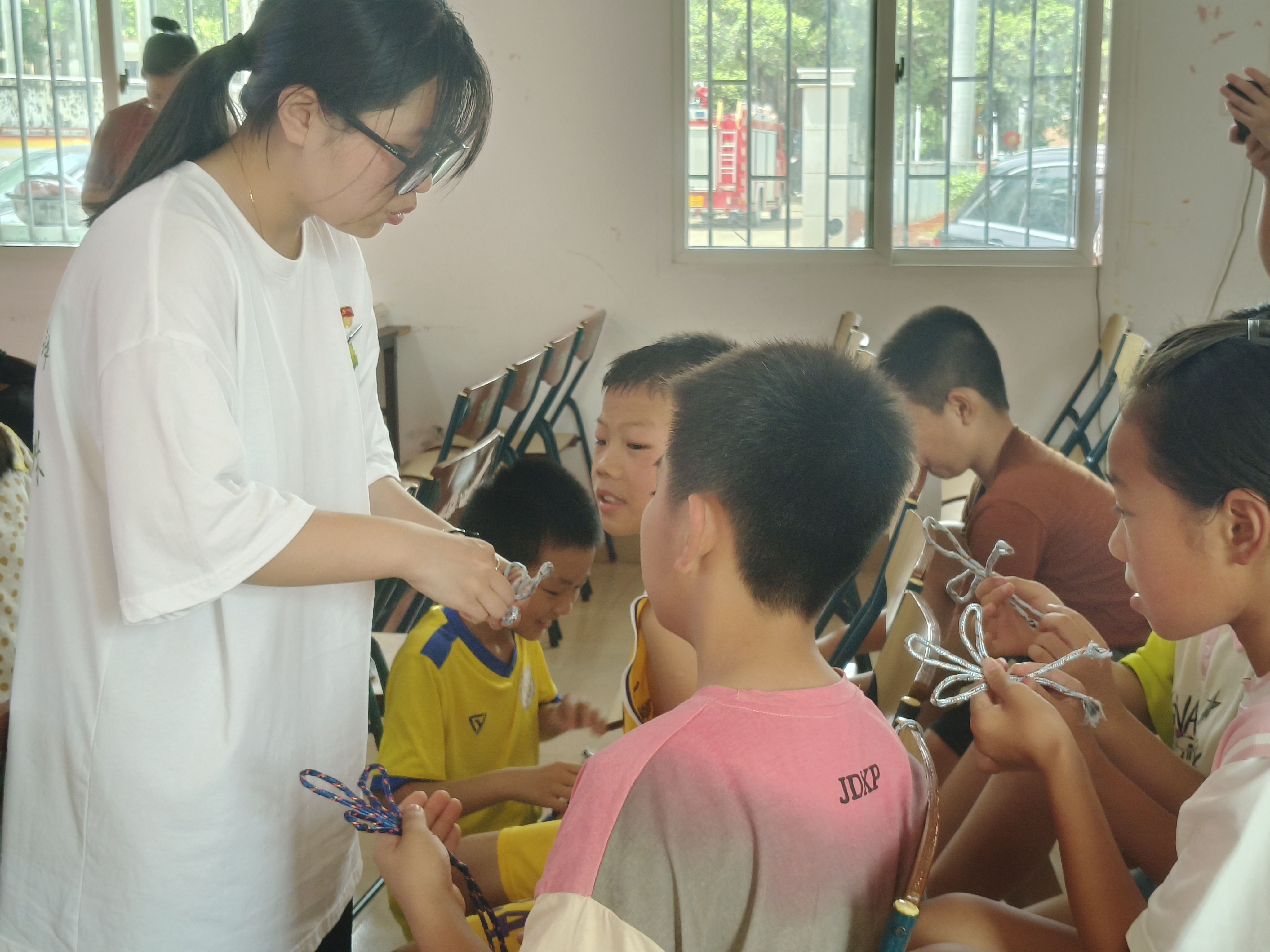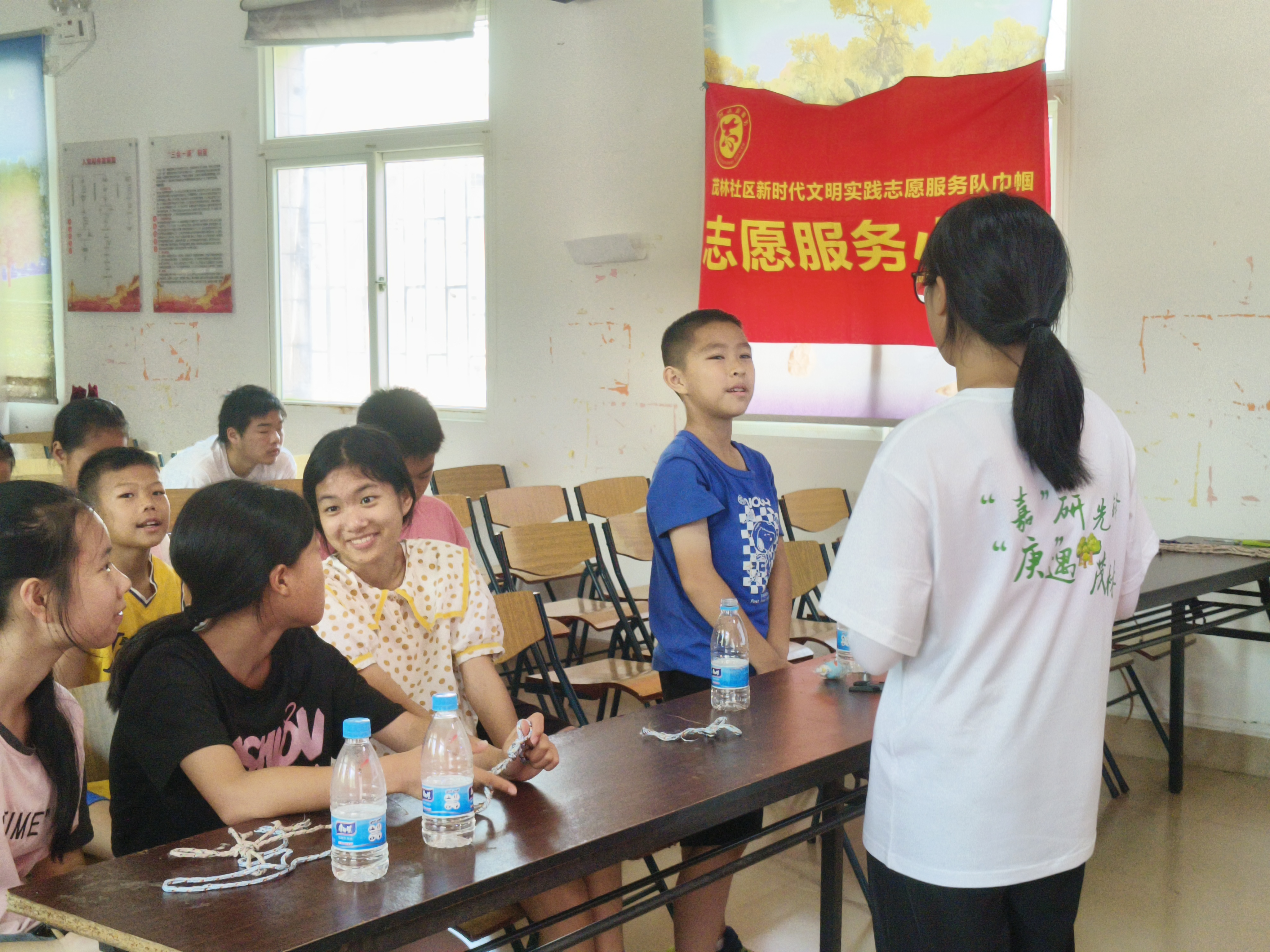 实践队来到了茂林村村委会,为了进一步宣传嘉庚精神,实践队成员罗白玉给小朋友讲述了陈嘉庚先生的故事。为普及海洋文化知识,培养同学们的团队合作精神,实践队成员为小朋友们讲述海洋文化知识,开展学习海洋绳结课堂,通过实际的手工活动,提高小朋友们的社会责任感和实践能力,增强彼此之间的团队合作和组织协调能力。