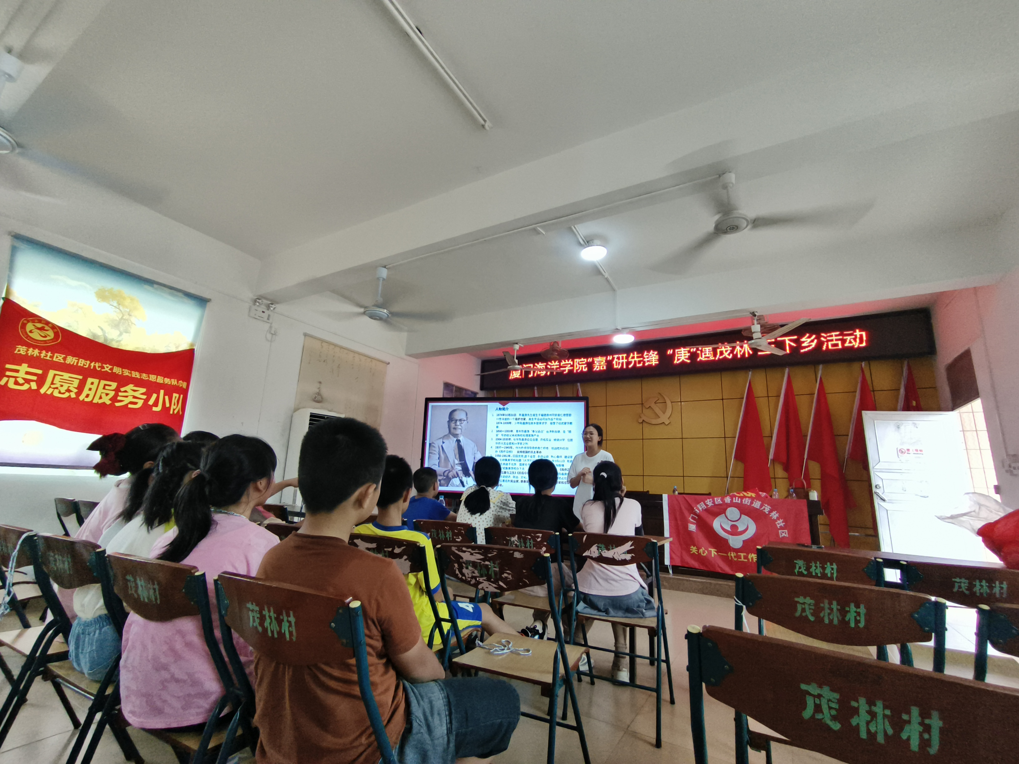 2024年是我校校主、爱国华侨领袖陈嘉庚先生诞辰150周年,6月30日,为深入弘扬嘉庚精神,国际商贸学院“‘嘉’研先锋,‘庚’遇茂林”暑期“三下乡”社会实践队走进翔安茂林村开展实践活动,旨在通过形式多样的文化传播和互动交流,促进茂林社区的居民深入理解嘉庚精神的内涵和现实意义,并传播海洋文化,推动乡村文化振兴,为当地经济发展贡献青年力量。