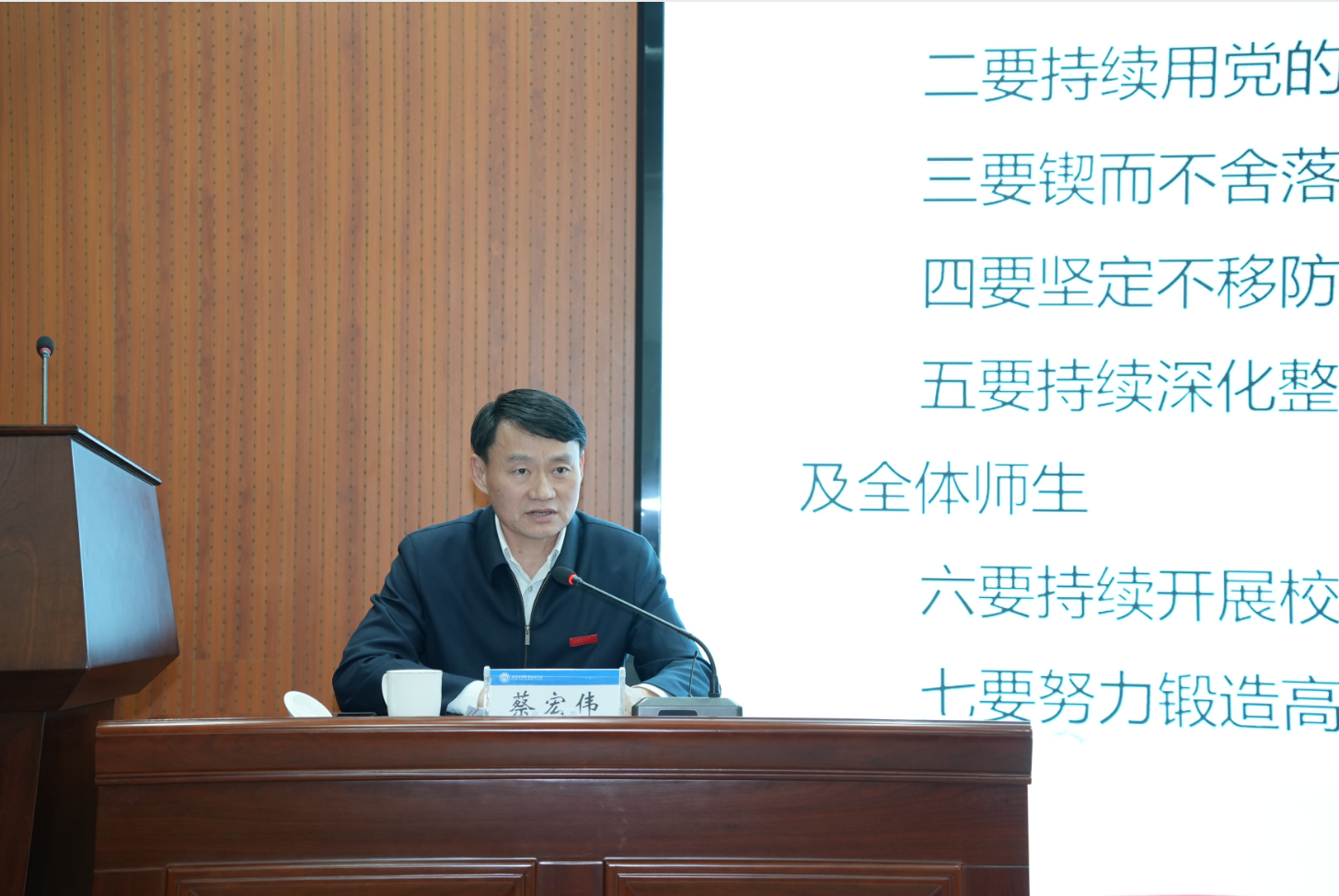 蔡宏伟指出,学习领会党的二十届四中全会精神既是当前和今后一个时期的重大政治任务,更是推动学校高质量发展、培养时代新人的根本遵循,要进一步提高政治站位,深刻认识党的二十届四中全会的重大历史意义和现实意义,深化思想领悟,准确把握党的二十届四中全会精神的核心要义与丰富内涵,不折不扣贯彻全会精神,切实把思想和行动统一到党中央决策部署上来。