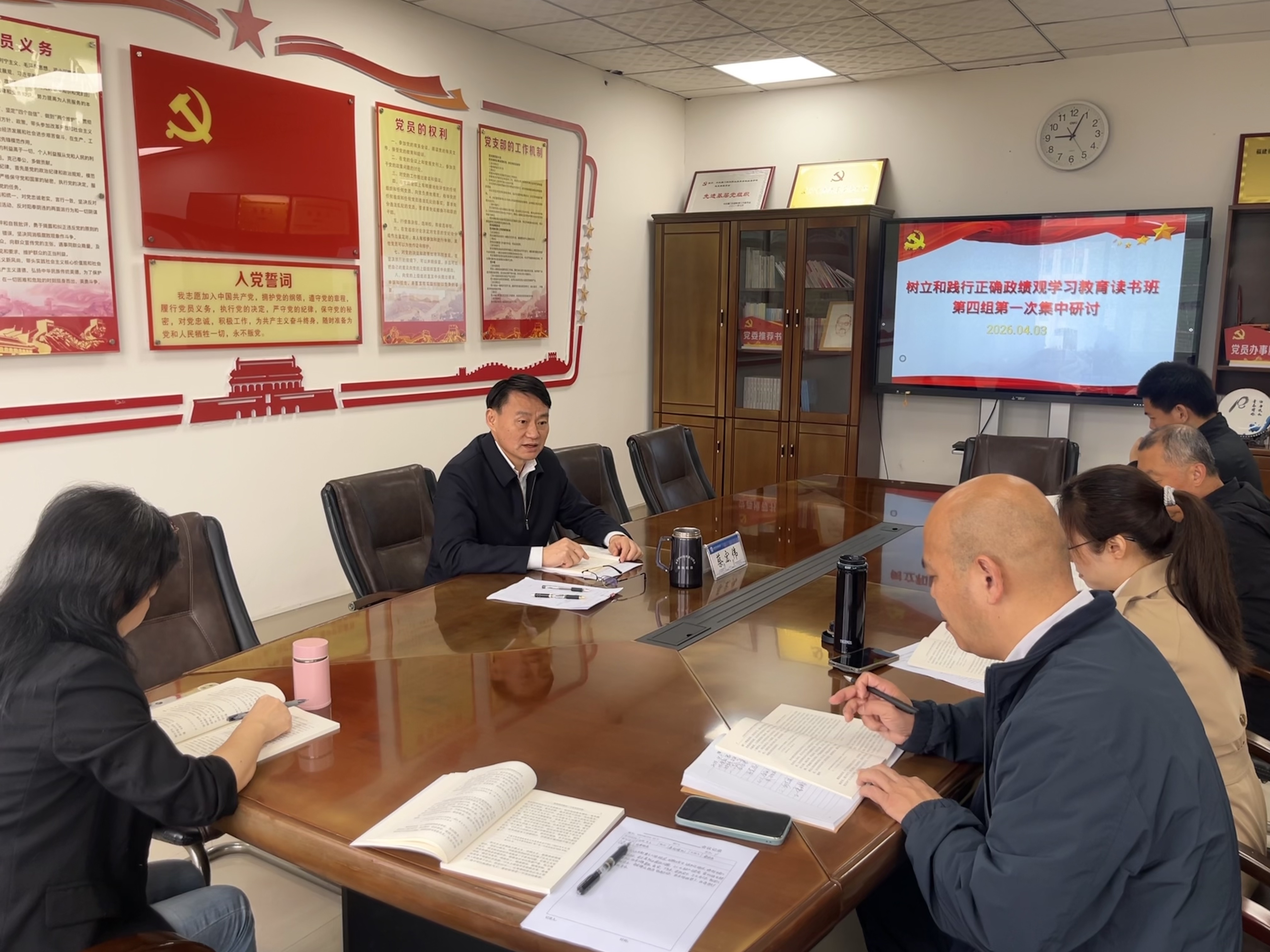 4月3日,树立和践行正确政绩观学习教育读书班第四组在嘉则楼401会议室举行第一次集中研讨。校党委委员、纪委书记蔡宏伟主持会议并作领学发言。
