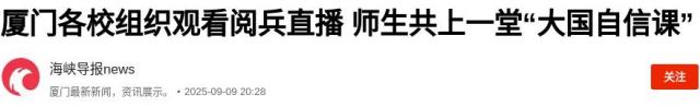 厦门一中、禾山中学等校也精心准备、用心组织师生观看阅兵直播盛况。大家表示,这是一场震撼人心的国防盛典,更是一场凝聚民族精神的“大国自信课”。