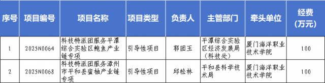 喜报| 我校两项2025年度福建省科技特派团服务重点产业链专项科技计划项目获经费资助