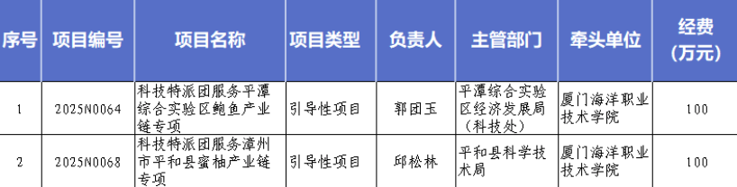 近日,福建省财政厅、福建省科学技术厅联合下达了2025年度福建省科技特派团服务重点产业链专项科技计划项目经费,我校郭团玉教授和邱松林副教授分别领衔,各获得100万元的经费资助。