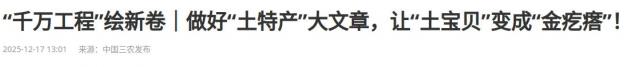 产业振兴是乡村振兴的重中之重。一方水土养一方人,一方水土产一方物。“土特产”是独特乡土资源孕育的地域产品,“土”讲的是基于一方水土,开发乡土资源;“特”讲的是突出地域特点,体现当地风情;“产”讲的是真正建成产业、形成集群。由此可见,看似普通的“土特产”,只要立足“土”,体现“特”,形成“产”,就大有文章可做。“千万工程”所蕴含的发展哲学,正在让每一寸土地都焕发潜能,让每一个“土宝贝”都有机会成为致富的“金疙瘩”。