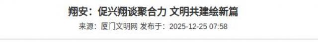 为持续厚植文明乡风底蕴,深化城乡融合发展实践成效,按照精神文明建设工作和“文明中国人人有礼”主题传播活动相关部署要求,2025年厦门市翔安区以“促兴翔谈”为载体,策划开展系列主题活动,搭建政-企-校-社联动对话平台,推动文明理念融入产业发展、社区治理、文化传承等各领域,为翔安高质量发展筑牢精神文明根基。