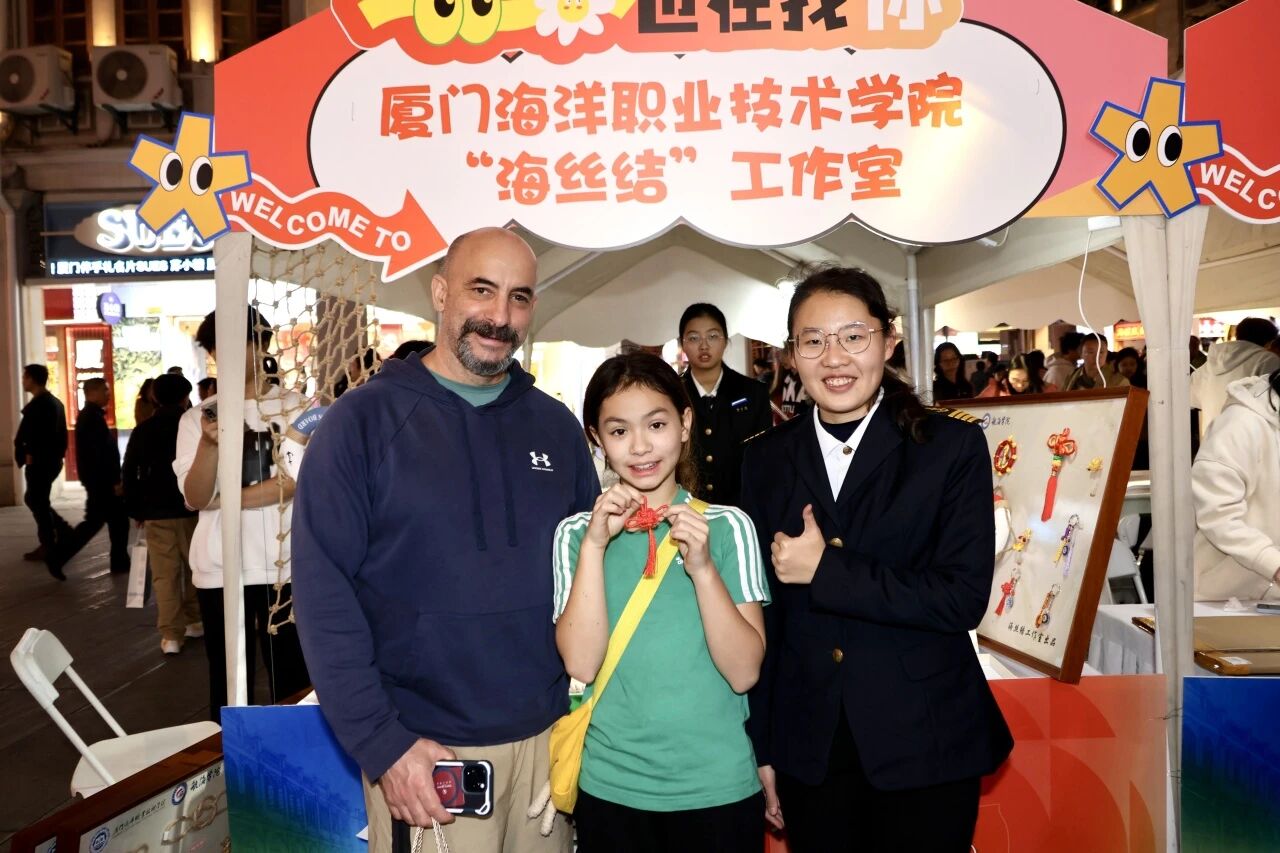 活动现场,我校航海学院船模大师工作室与“海丝结”工作室携手布展,呈现了精美的非遗船模与创意绳结文创作品。木质船模承载着海洋记忆,手工绳结编织着海上丝路的故事,在繁华街区中生动展现传统工艺的当代魅力。展位前游人络绎不绝,或驻足细赏,或交流询问,在赞叹工匠精神的同时,也深切感受到传统技艺与现代生活融合的活力。