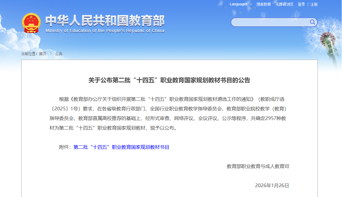 喜报丨我校两部教材入选第二批“十四五”职业教育国家规划教材