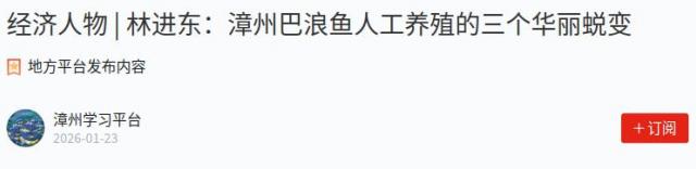 26年前,漳州市东山县杏陈镇后林村村民林进东敢为人先,试养巴浪鱼喜获成功,让这条廉价鱼变身“贵族”。在他的引领示范下,人工养殖的巴浪鱼逐渐发展成为富民新产业,东山成为全国规模最大的巴浪鱼养殖基地。此后,在他的推动下,科研团队成功攻克巴浪鱼人工育苗与养成技术,改写了鱼苗来源单靠野生的历史。