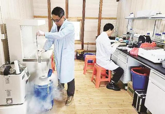 在林进东“丰汇巴浪鱼养殖基地”实验室工作的技术人员