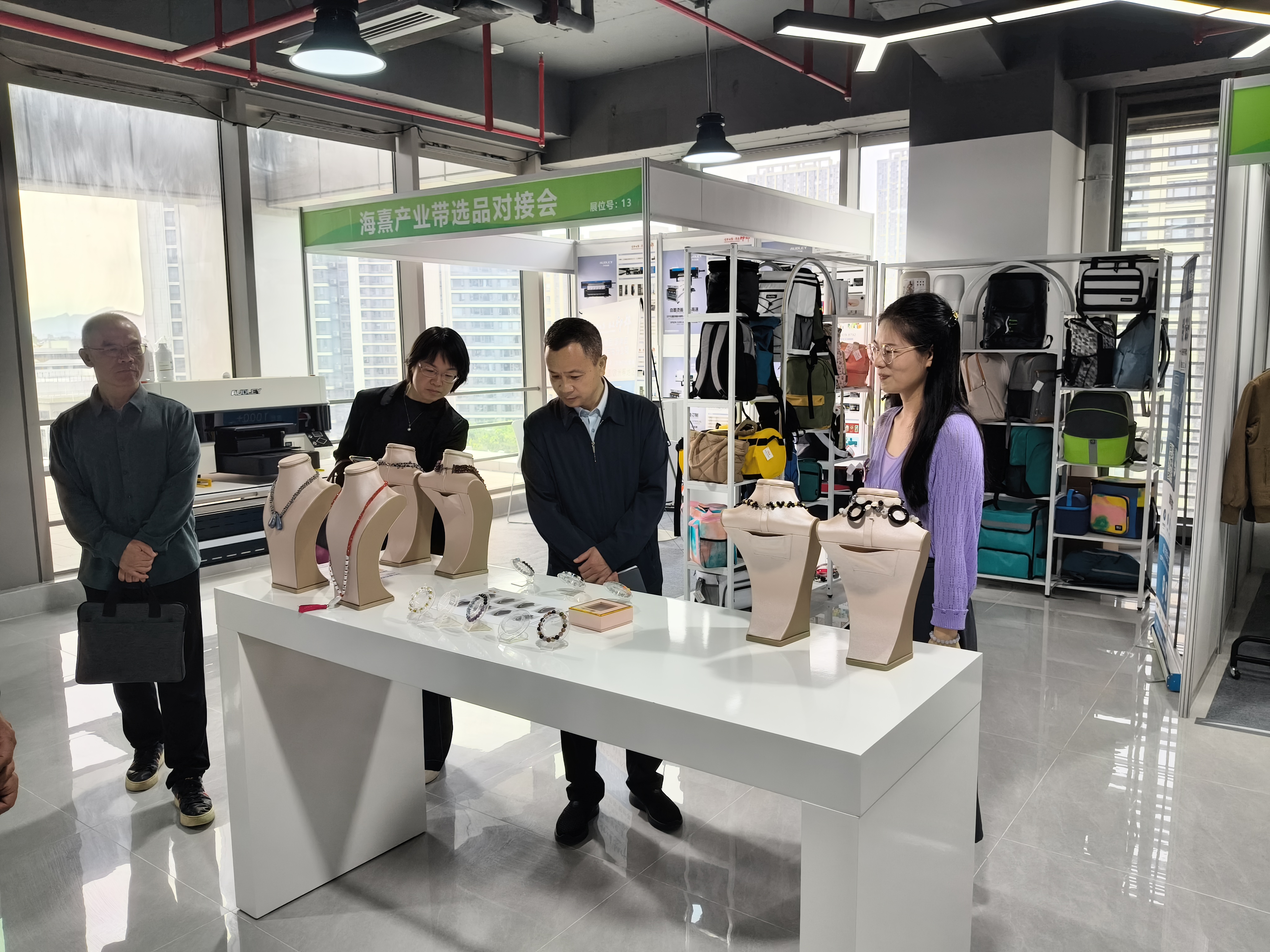 在余文婷陪同下,刘光明一行实地参观了海熹跨境电商产业园展示中心、供应链选品中心、企业孵化区、园区运营中心、众创空间、培训室及共创空间等区域,详细了解园区整体布局、运营模式和发展成效。参观过程中,余文婷介绍了产业园依托福建服装、卫浴、健身器材、眼镜等优势产业带资源,打造“产品+人才”双轮驱动运营模式的做法,以及园区在供应链整合、创业孵化、人才培养、产业服务等方面的探索实践。