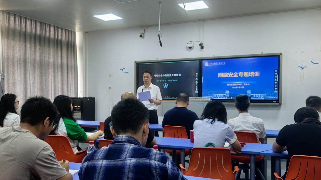 4月15日,我校在1503智慧教室举办网络安全专题培训,邀请福建煜乘信息科技有限公司资深技术工程师陈亚福为大家讲解如何提升网络安全素养、维护数据安全。副院长倪辉作主题发言,强调各部门要筑牢数字防线,为智慧校园建设保驾护航。学校各部门网络安全员、业务系统管理员参加培训。