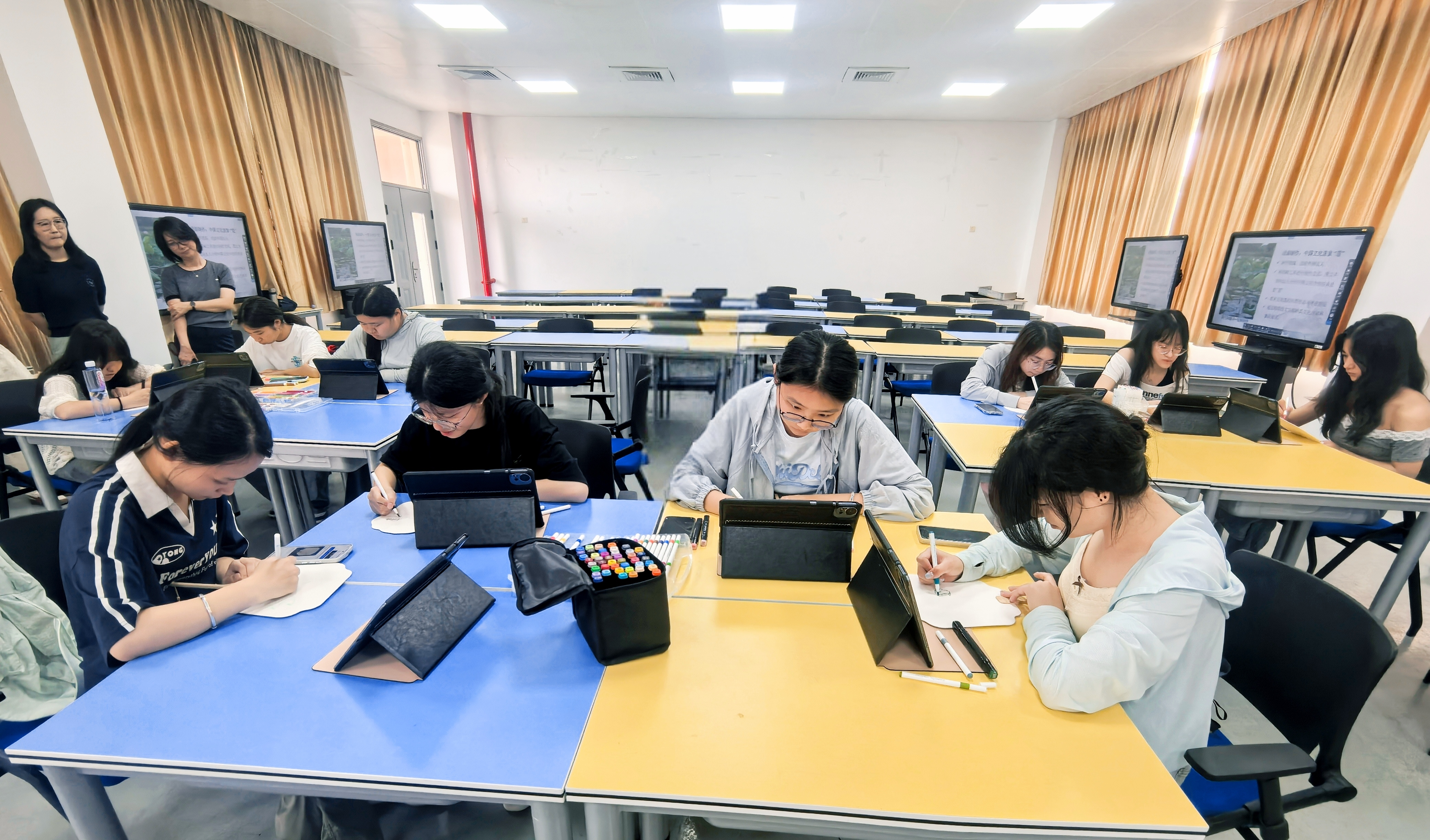 在实践环节,同学们结合所学知识,借助 AI 工具创意构思、自主完成廉洁主题扇面绘制,将莲之高洁、廉之正气融入作品,以艺术形式诠释对廉洁文化的理解。