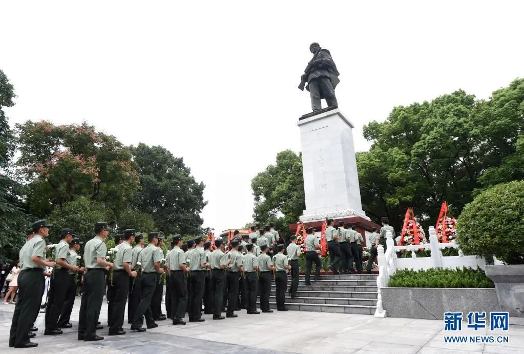 在位于重庆市铜梁区的邱少云烈士纪念馆,武警官兵向邱少云烈士纪念碑献花(2017年9月30日摄)。新华社记者 唐奕 摄